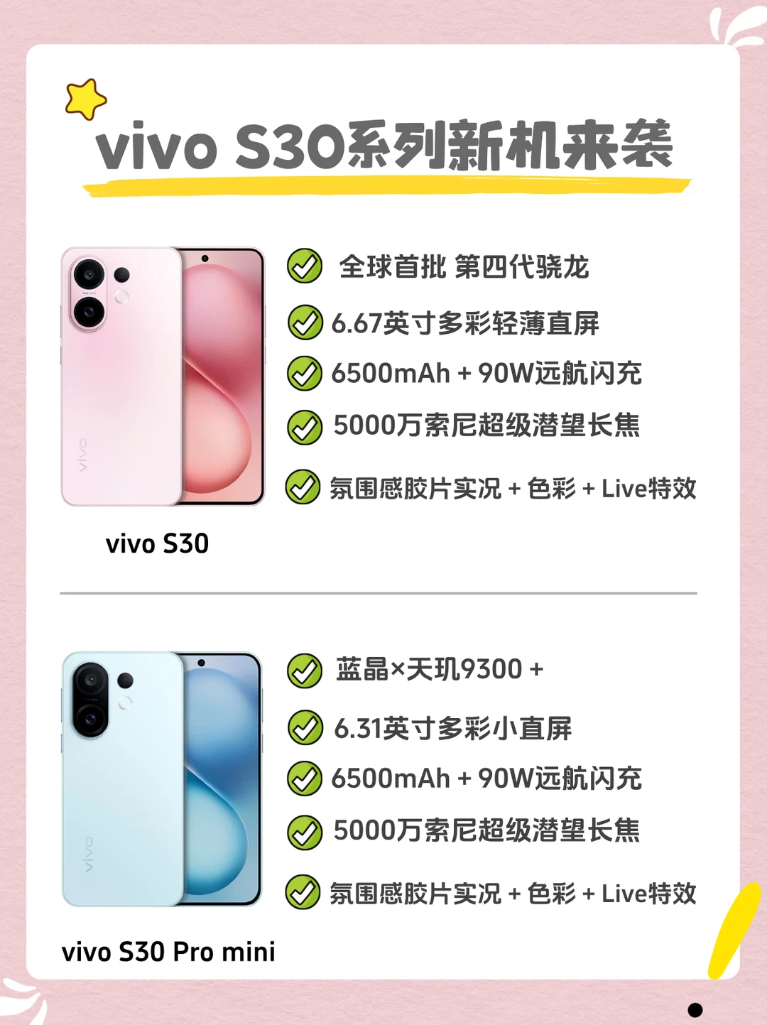 vivo S30系列发布啦[派对R][派对R],这个系列一直是主打外观时尚、手机轻薄、拍照好看✨,非常适合大学生和职场女性🤩,618期间高颜值手机怎么选!vivo S30系 列会给你答案的!