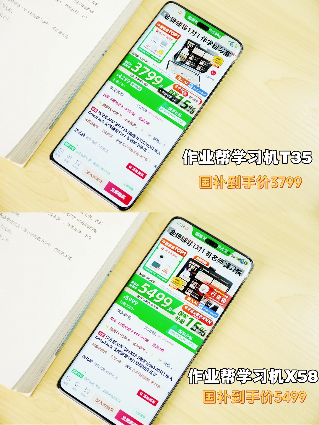 作业帮学习机T35原价4299多,国补到手价3799就能入手,而X58原价5999,选择国补到手价仅需5499,现在入手性价比真的很高