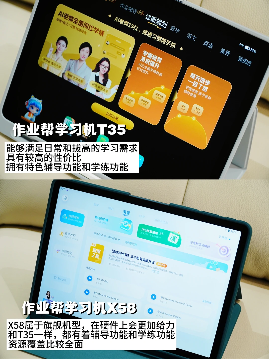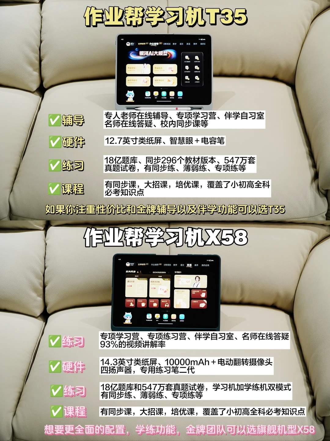 两款学习机都能满足日常和拔高的学习需求🤨🤪,T35更注重性价比[赞R],X58属于旗舰机型在硬件上会更给力[吧唧R][吧唧R],大家还是看自己需求
