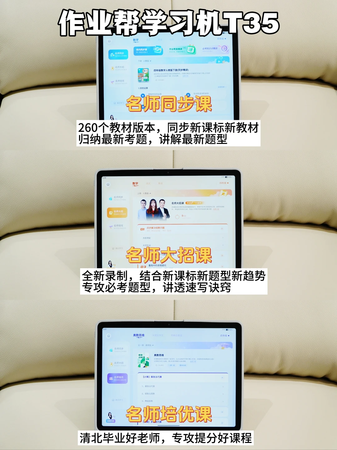 两款学习机都包含了260个教程版本😘😘,同步新课标新教材,归纳最新考点,讲解最新题型,还有新型考试题目[赞R],主要包含了名师同步课、名师大招课、名师培优课,都是清北毕业老师设计的,可以更好的帮孩子学习进步![害羞R][害羞R]