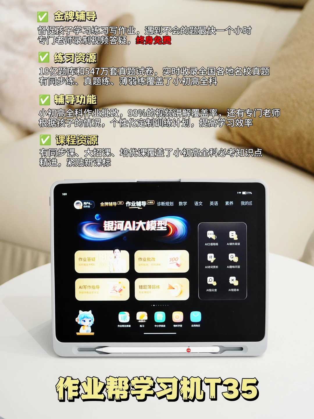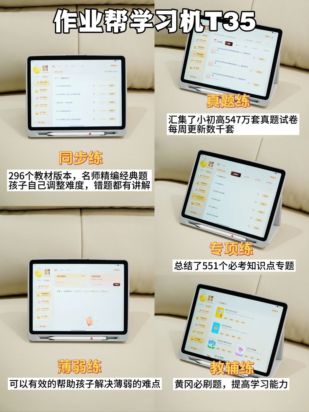 两款均搭载18亿+题库,在学习资源上肯定不用担心😘😘,包含了小初高九科,296个教材版本,547万+真题试卷,能适合不同地方的孩子学习[赞R],主要包括了同步练习、考前真题、错题薄弱练、专项练习、热门教辅等功能齐全。能有效的帮助孩子们学习![吃瓜R][吃瓜R]
