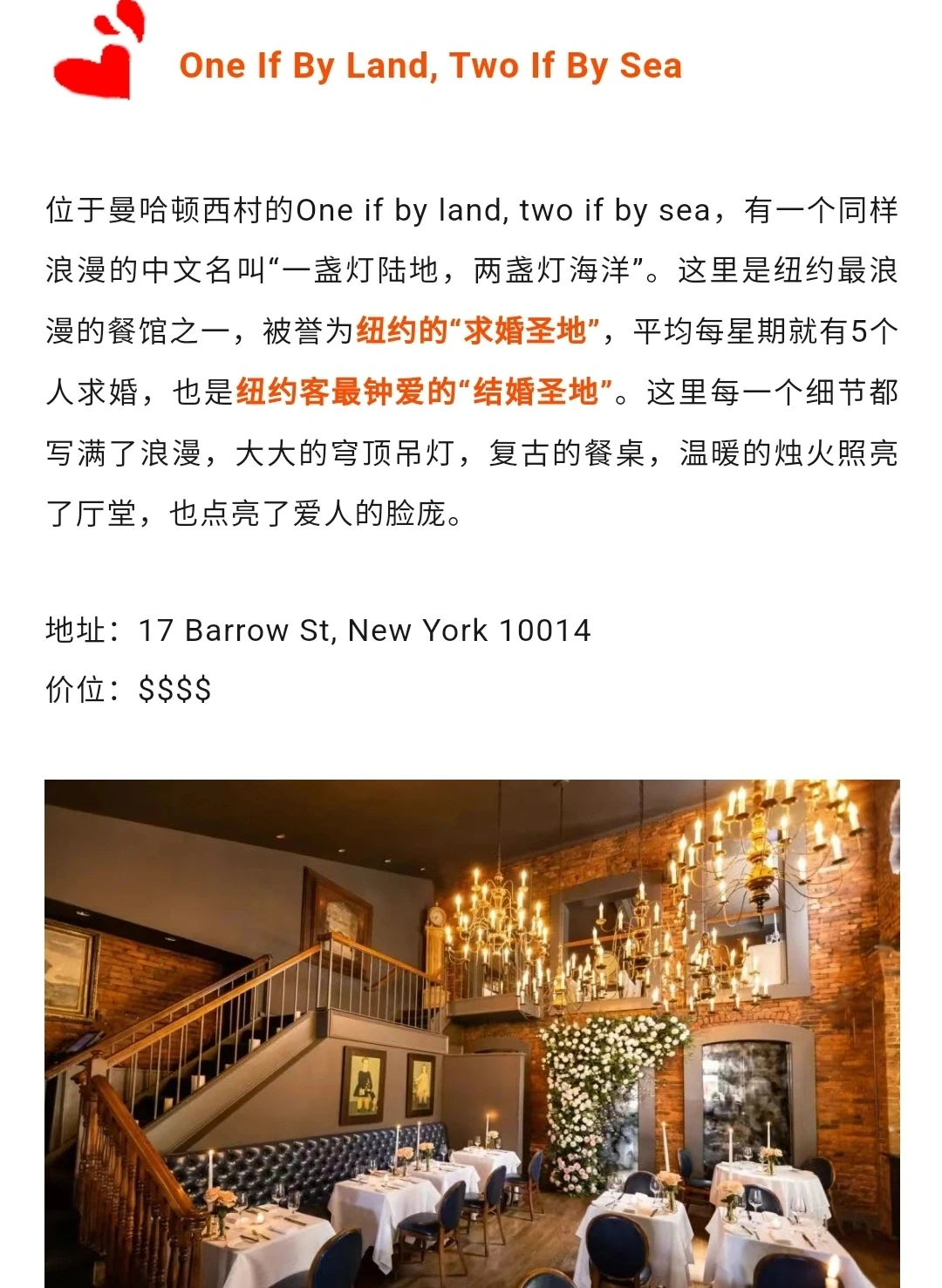 好吃君精心整理了纽约十大最浪漫的餐厅,家家环境优美、浪漫满屋,一定给你们一个最难忘的情人节!