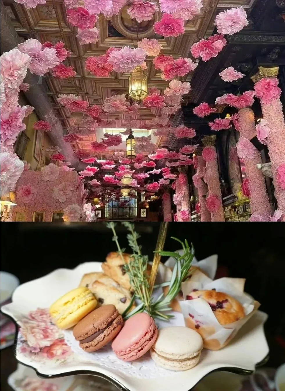 维多利亚主题风格的浪漫餐厅,双层挑高的宽敞空间、复古的穹顶和装潢,分分钟穿越到了浪漫的欧洲!每年情人节期间还会装点起满墙的粉红色,以及漫天垂落的粉色花朵,宛如一片浪漫的花海!