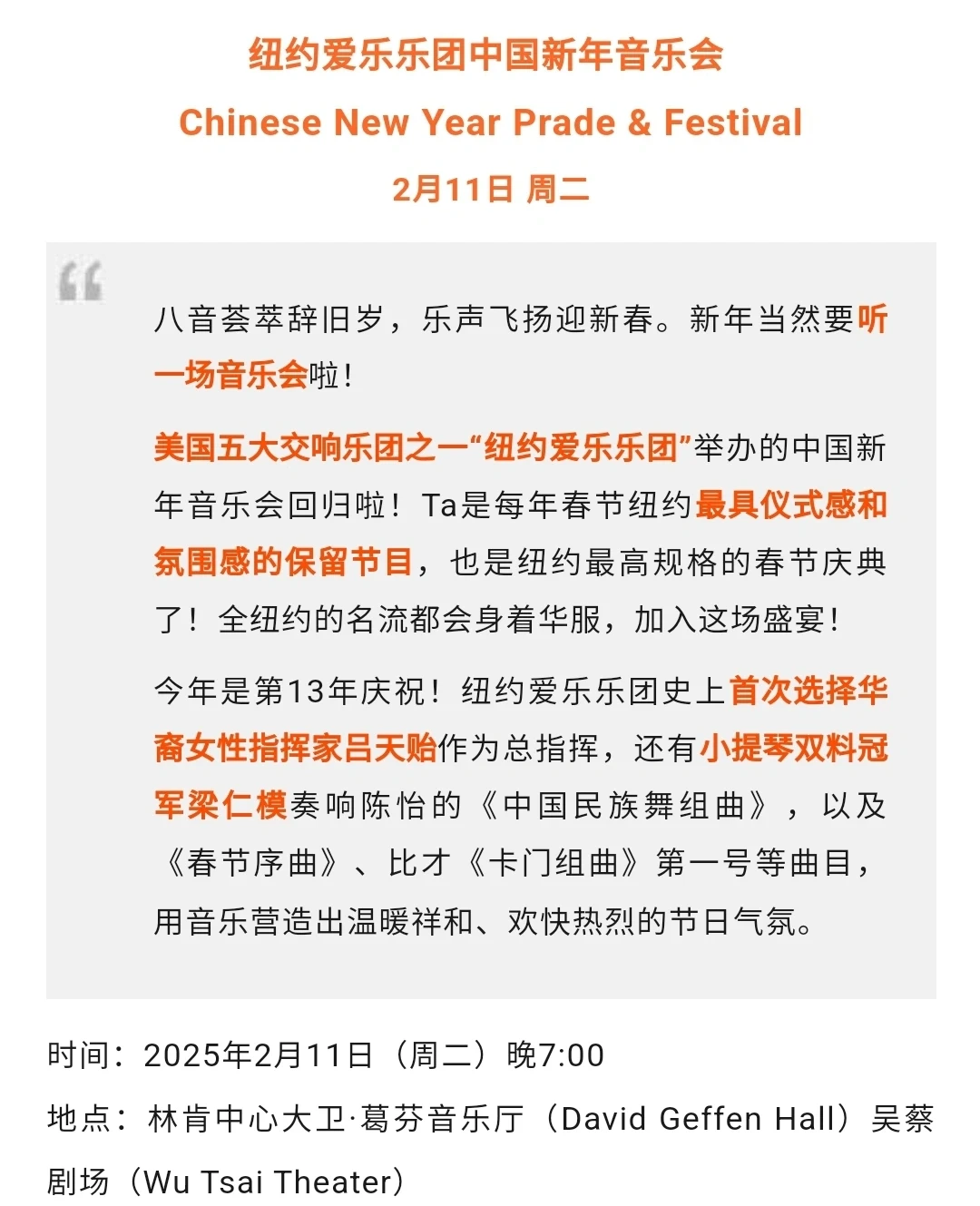 4️⃣纽约爱乐中国新年音乐会 2月11日