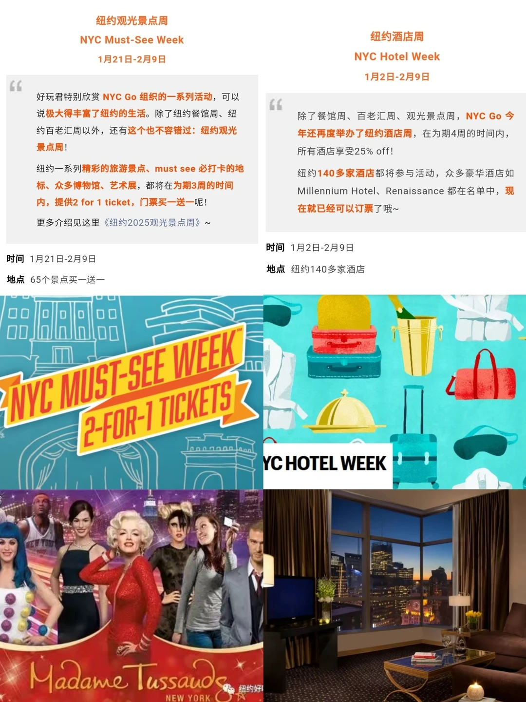 9️⃣纽约观光景点半价周 1月21日-2月9日