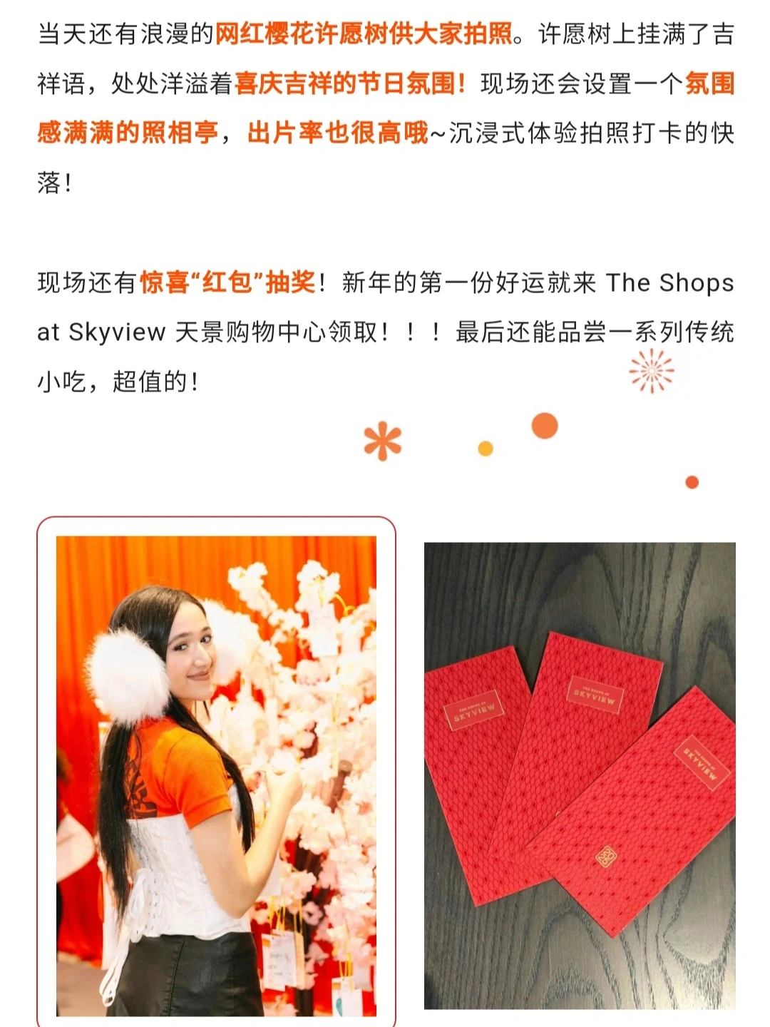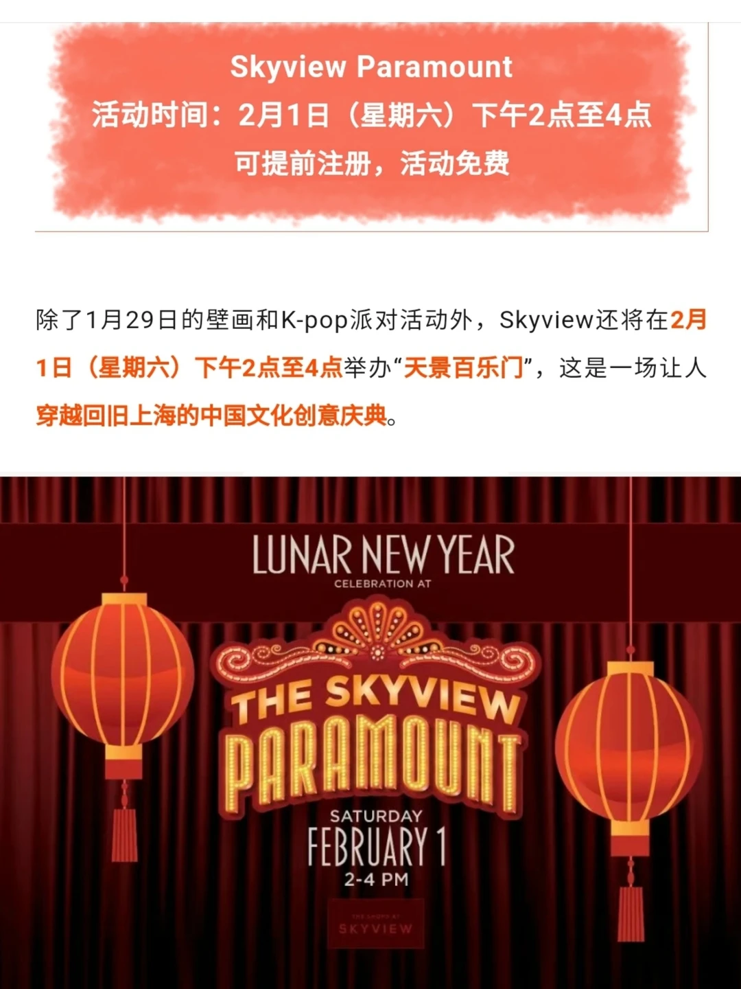 要说哪儿的年味儿最浓?好吃君必须投Skyview 天景中心一票!这不,为了庆祝中国新年,Skyview 在1月29日和2月1日这两天,又准备了一系列庆祝活动等着大家呢!