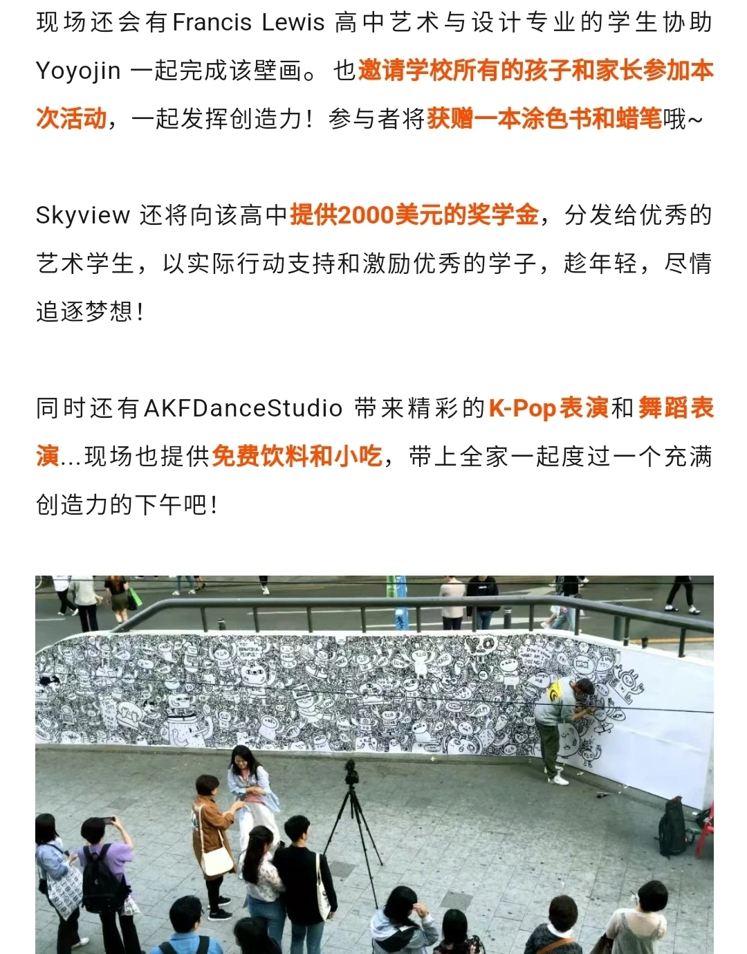 Skyview 天景中心 还将提供$2000元的奖学金,以鼓励学生们参与公众艺术活动!