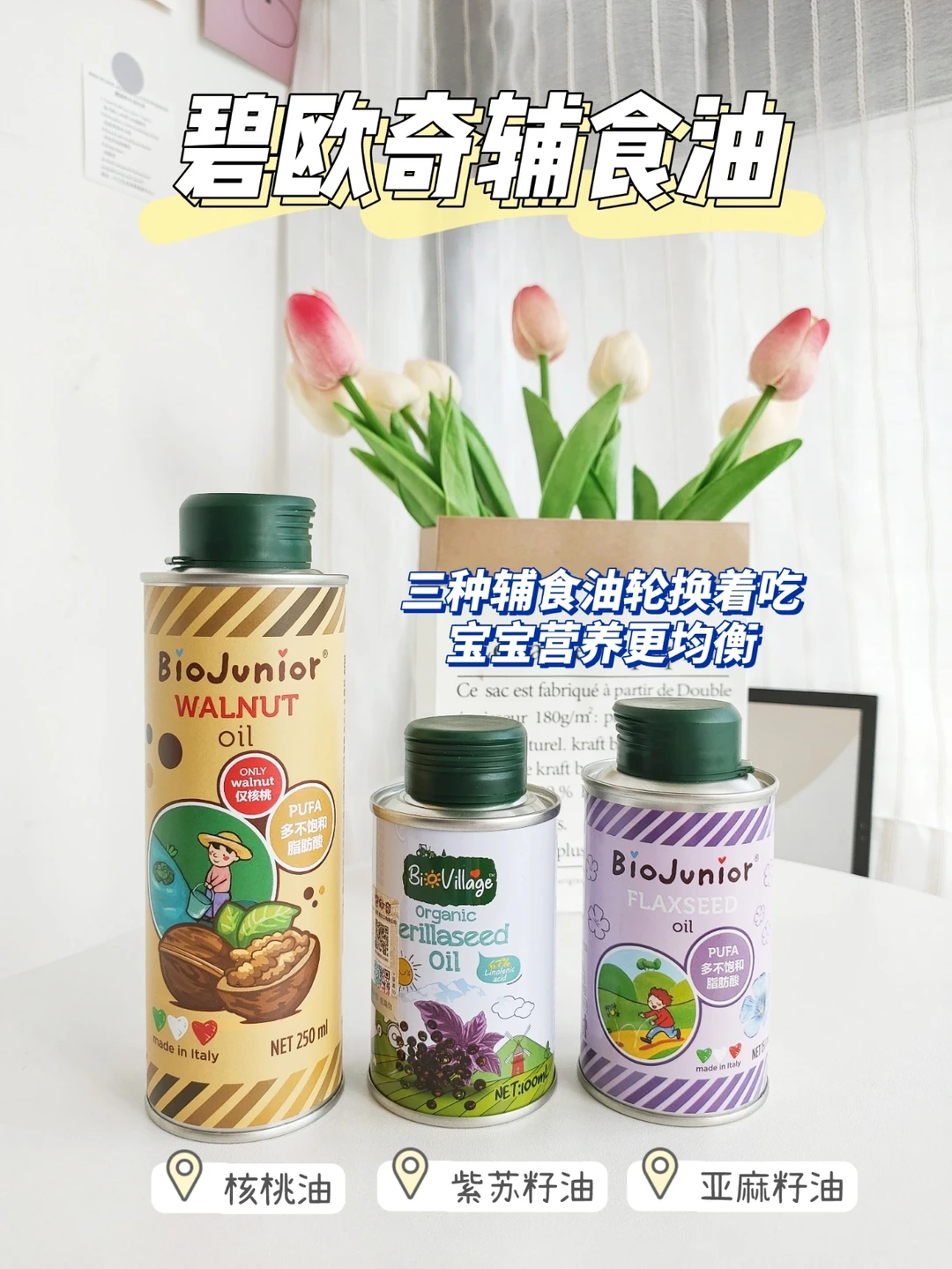 ⏺️后来随着辅食烹饪的多样化,给宝宝又入了碧欧奇的紫苏籽油和亚麻籽油,跟之前的核桃油轮换着吃。