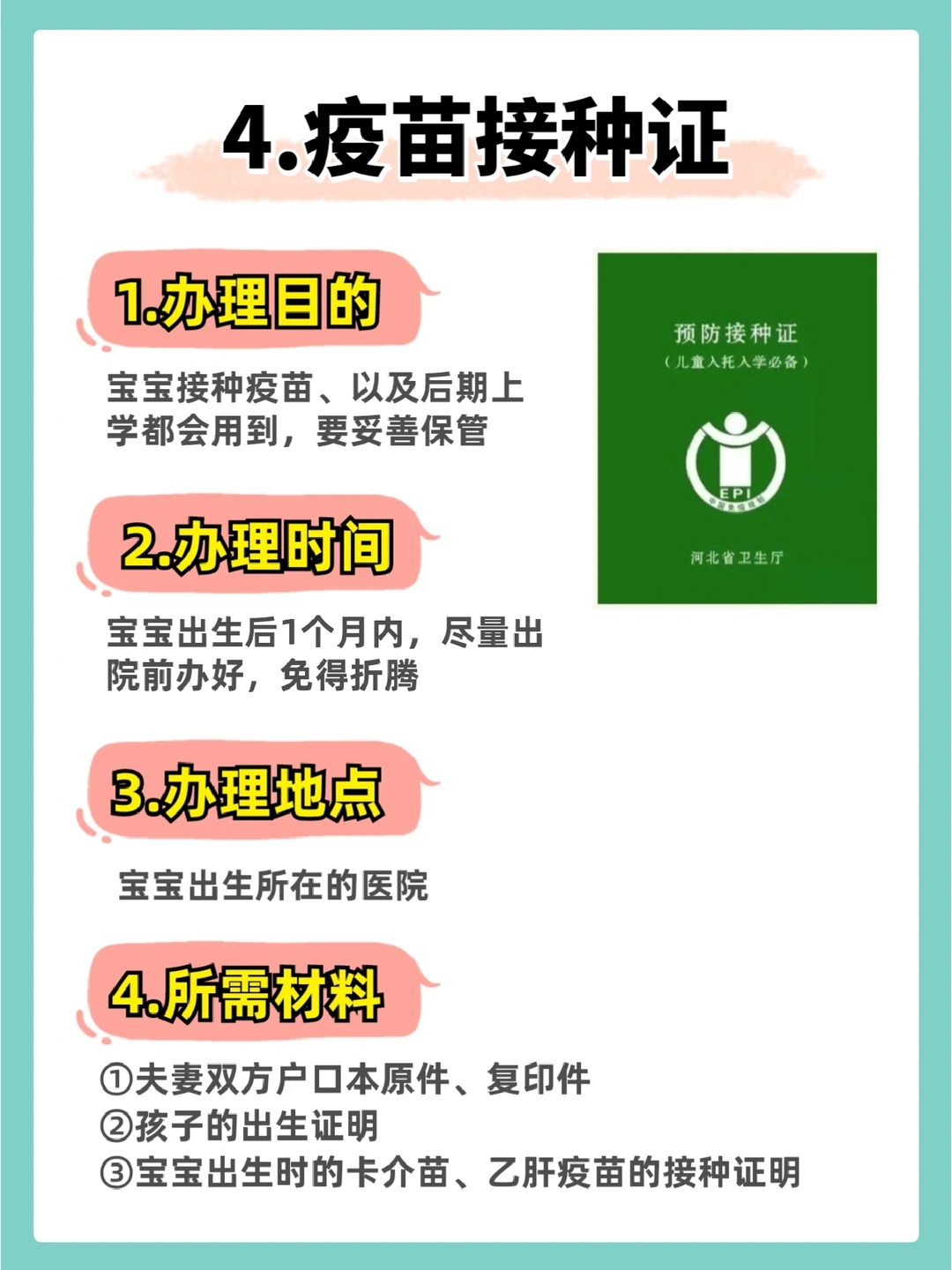 4⃣️预防接种证(一个月内)