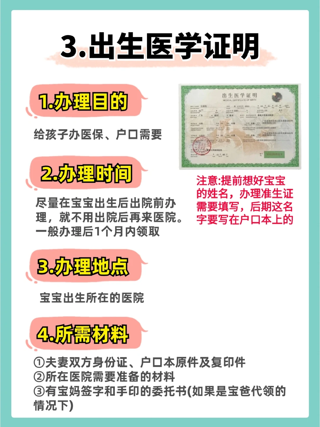 3⃣️出生医学证明(宝宝出院前)