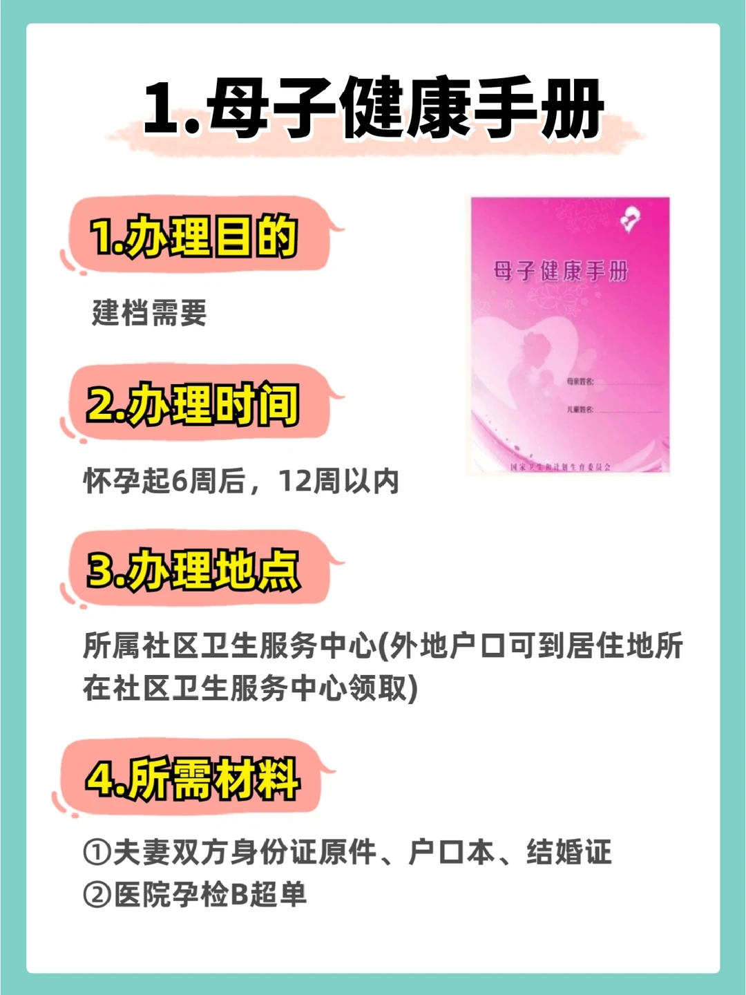 1️⃣母子健康手册(孕6周-12周)