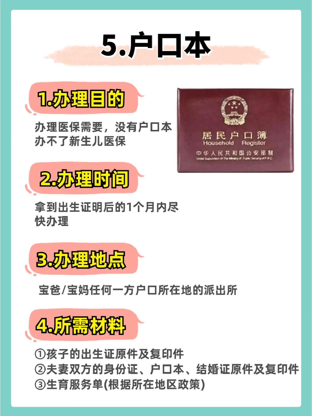5⃣️户.口本(一个月内)