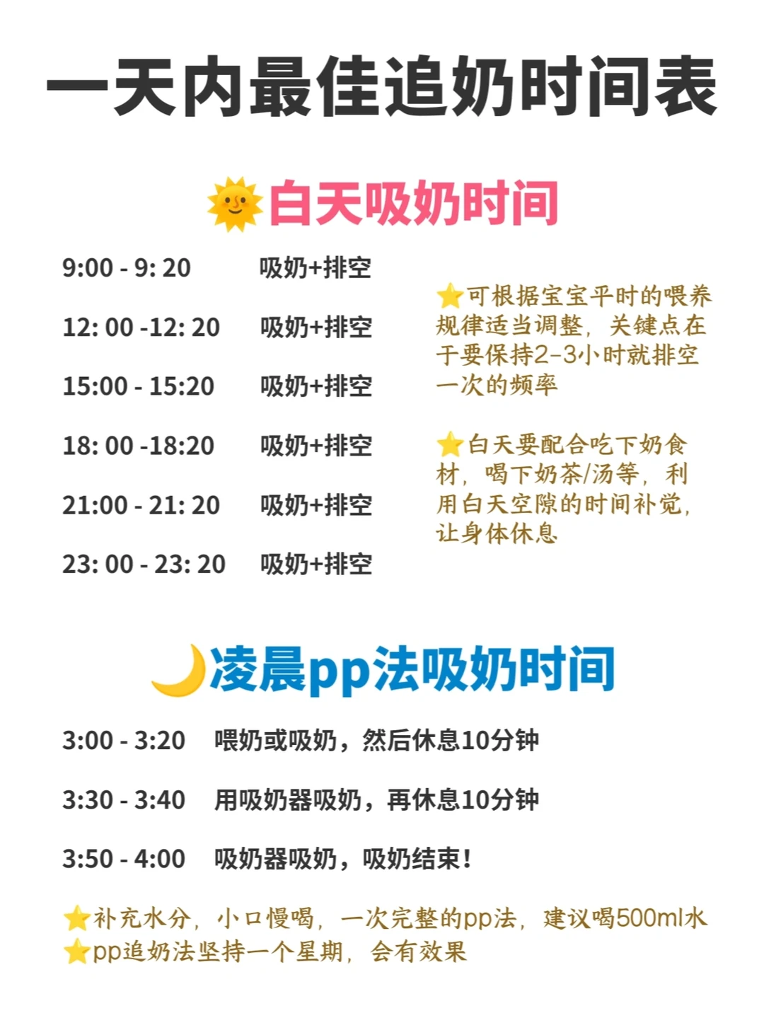⏺️借助吸奶器来追奶,白天要勤吸勤排空