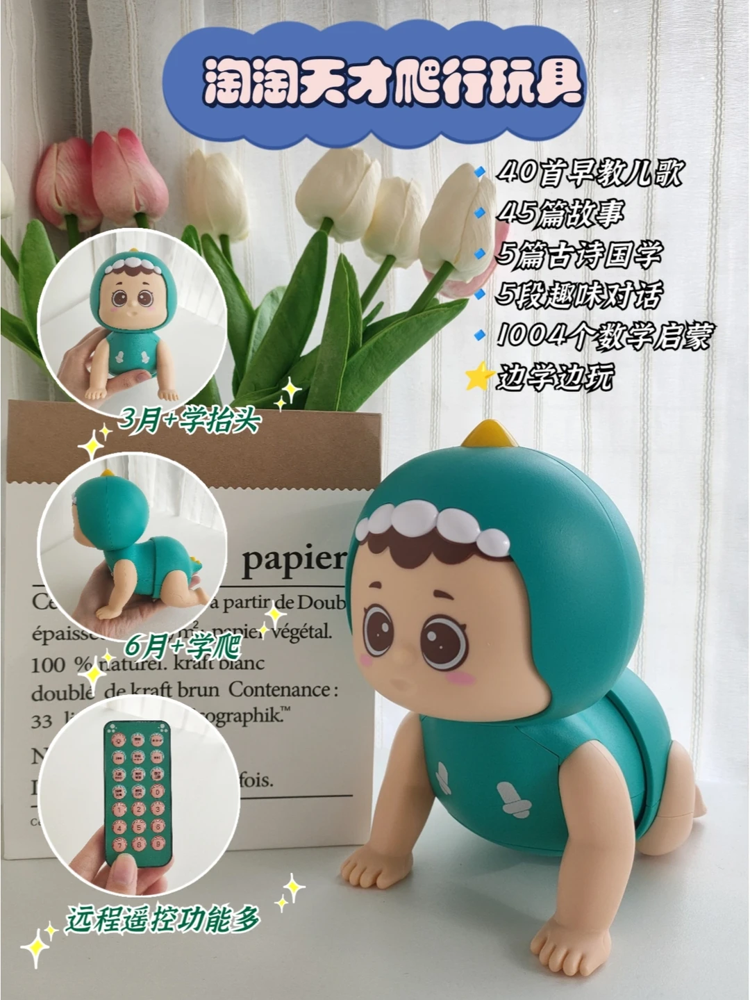 这款爬行玩具穿的小恐龙学爬服,模仿小宝宝人形,爬行起来一扭一扭,样式可爱极了。