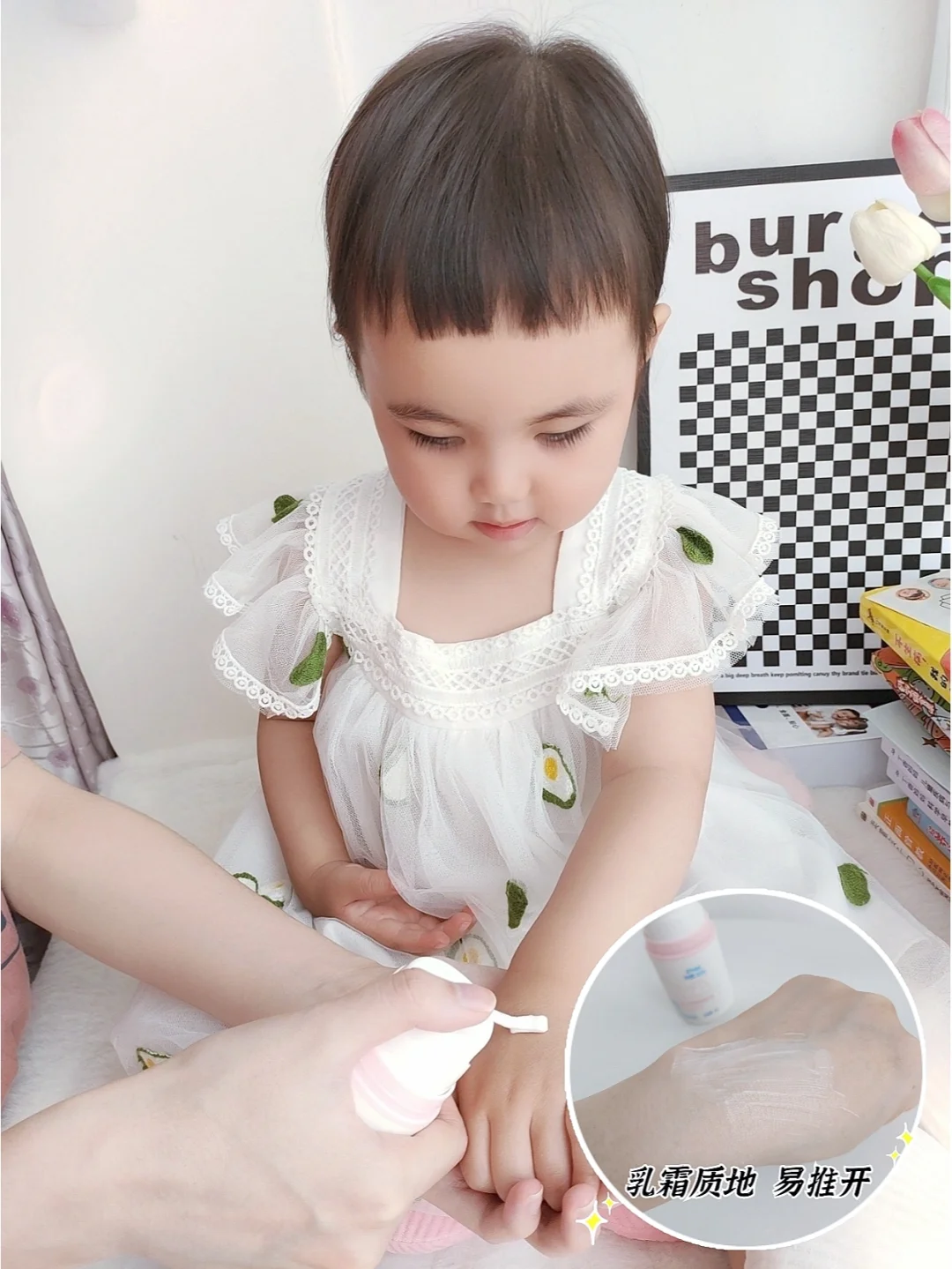 🍀奶霜质地,但不厚重,一点不用担心它会闷、黏腻,抹几下就能擦均匀,很快就吸收了🥰🥰宝宝干燥结痂的地方,涂完后摸起来的确会感觉软了🤗