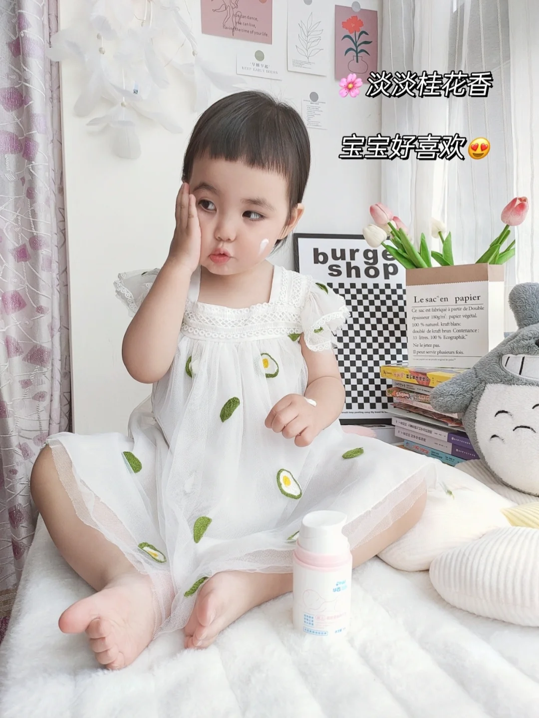 🍀用上这个桂花霜之后🤩我很直观、惊喜的感受是:带娃出门回来,他甚至连高原红的情况都没有了,脸上、身上的泛红,干巴巴的地方,厚厚的涂一层🤗第二天早上起来就褪得七七八八了,皮肤柔软嫩嫩的😘😘坚持使用,宝宝皮肤好很多啦!麻麻们可以放心入手吧!