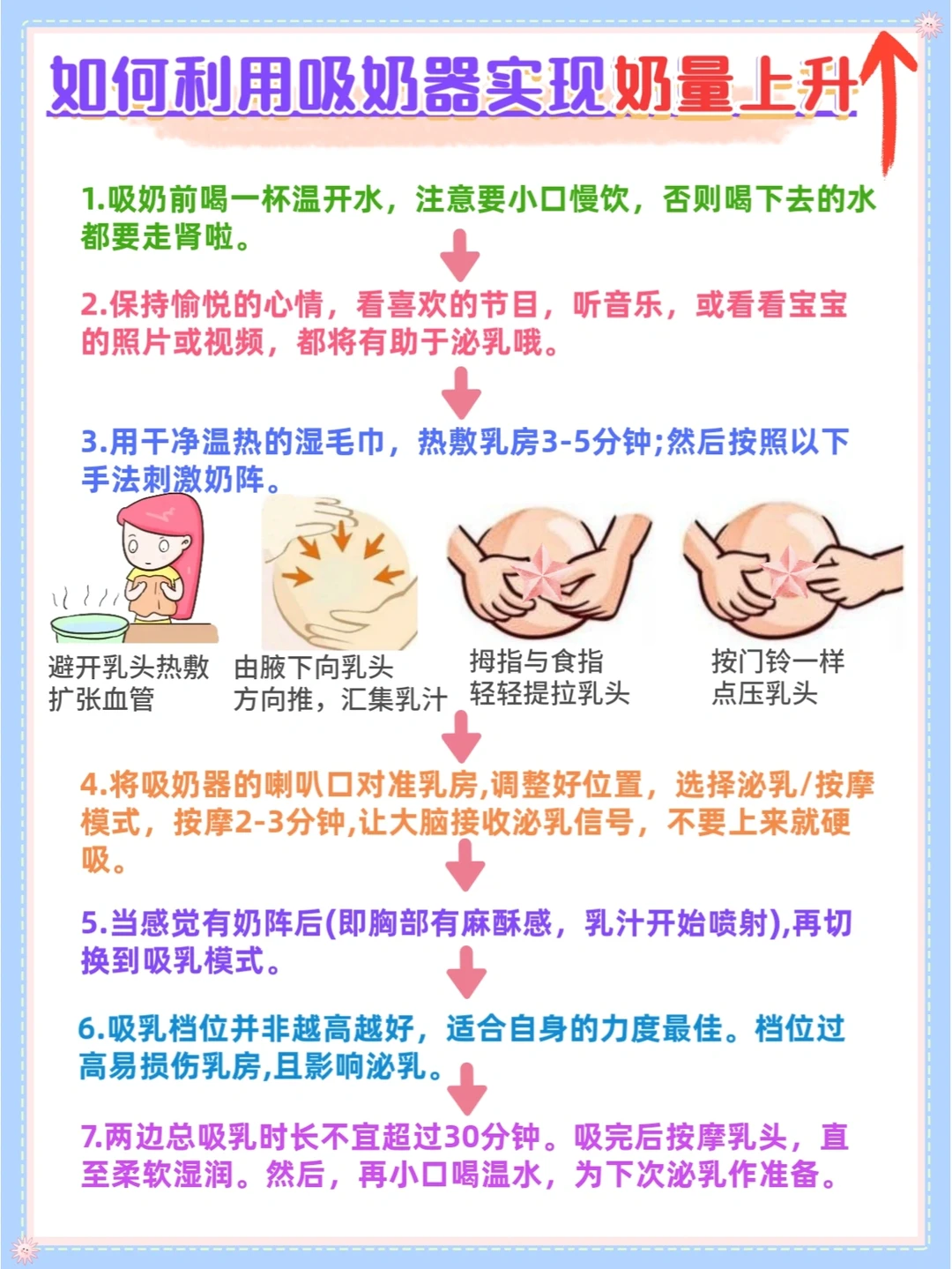 这是提升奶量的关键,可以热敷胸部+睡前泡脚+洗热水澡+刺激手法。