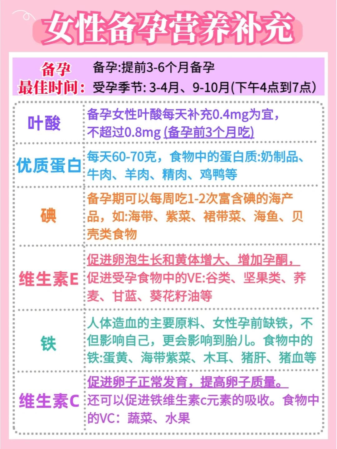 🔹1.备孕:提前3-6个月备孕