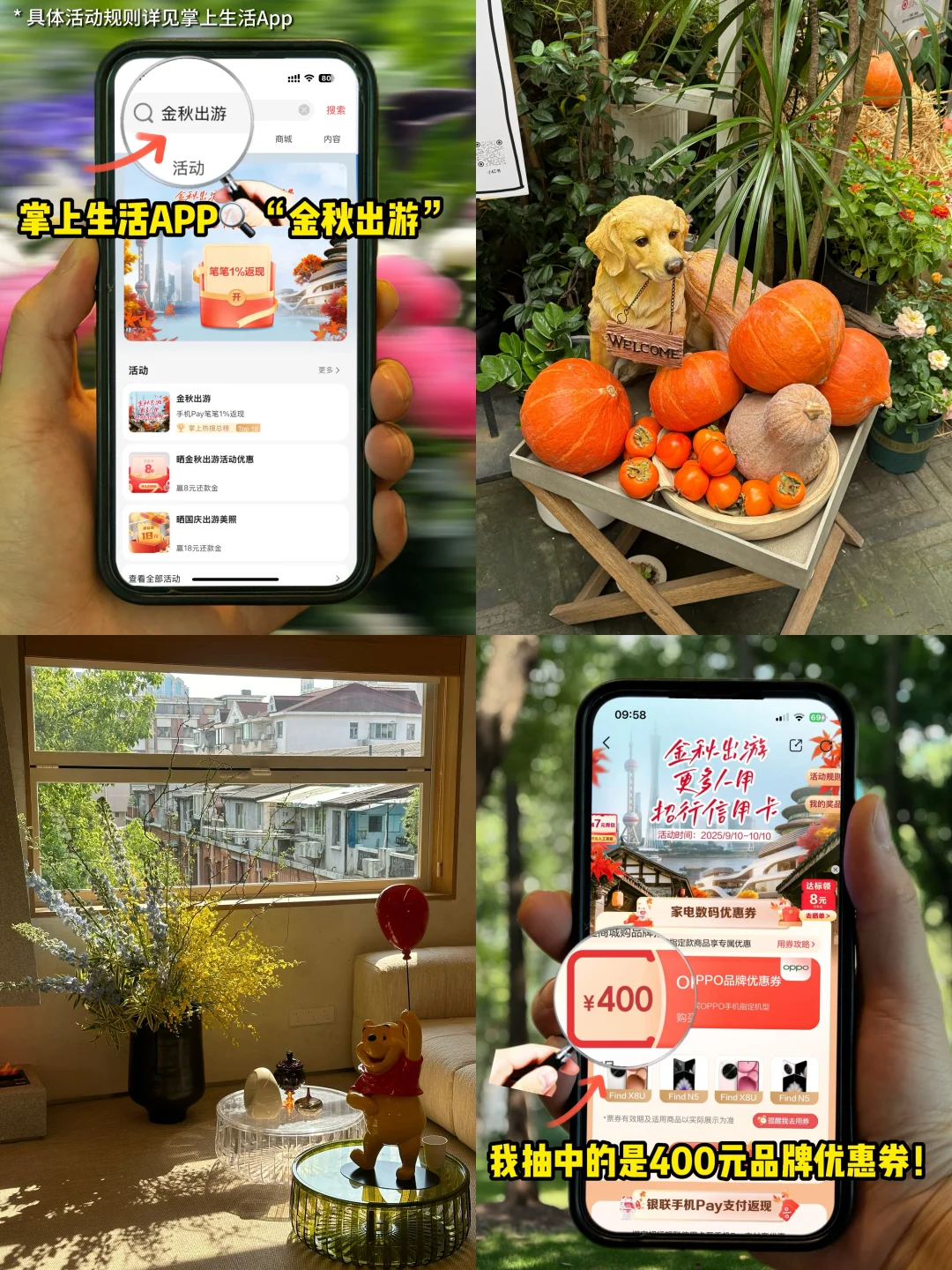 在掌上生活App搜索“金秋出游”就有可能抽取这些优惠券: