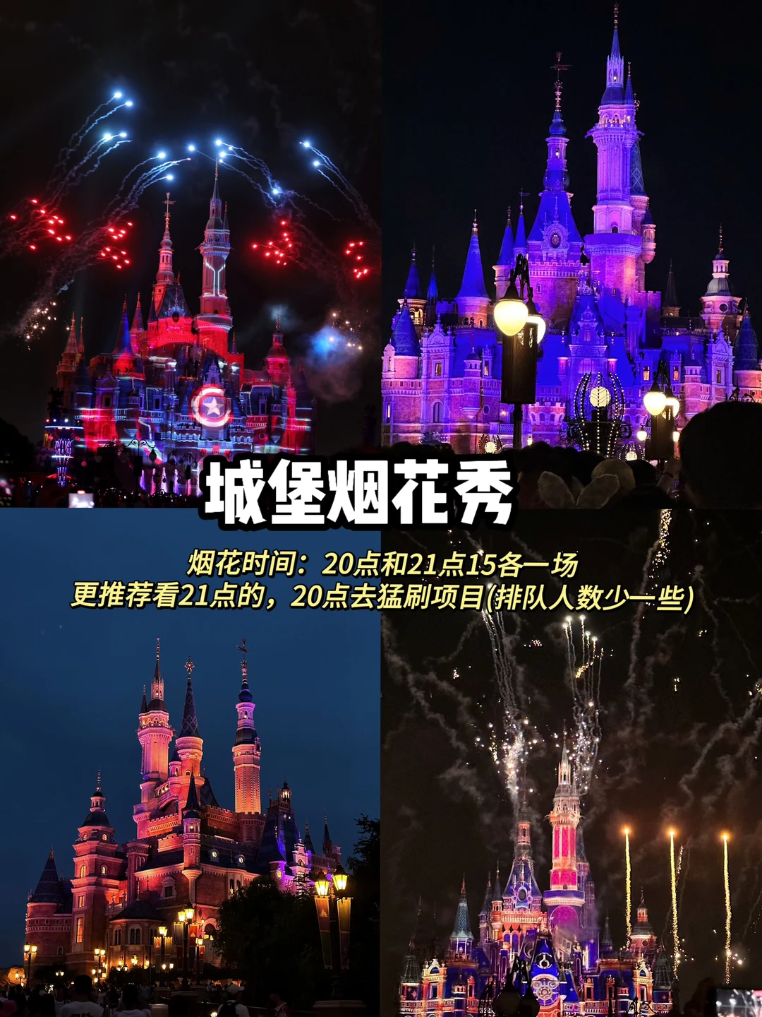 城堡烟花秀一共两场20点和21点15,七个篇章的烟花秀,每个篇章都映射一部动漫故事[哇R]