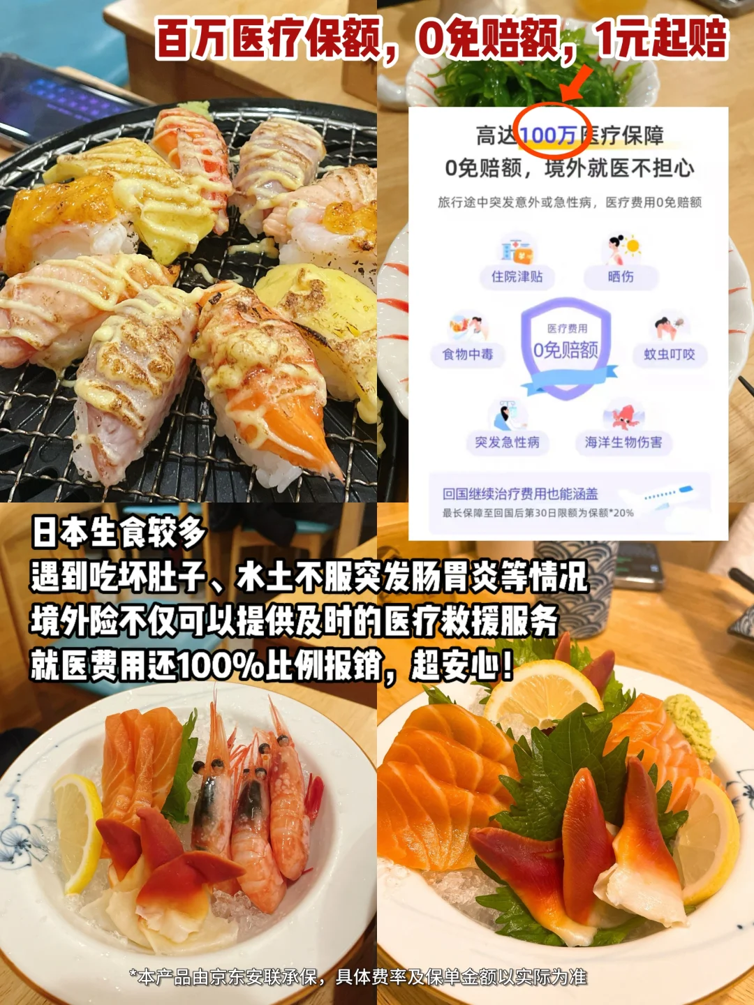 像日本生食较多,遇到吃坏肚子、水土不服突发肠胃炎等情况,可以提供及时的医疗救援服务,就医费用100%比例报销(超安心)