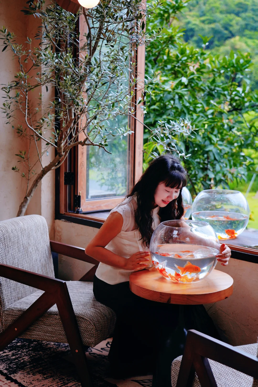 云深不知处,一隅小荷塘浮着几片圆叶,几尾锦鲤游过,惊醒了半盏清梦。 窗台鱼缸里的鱼儿懒懒游弋,茶烟升起时,整间屋子便成了水墨里洇开的闲章。