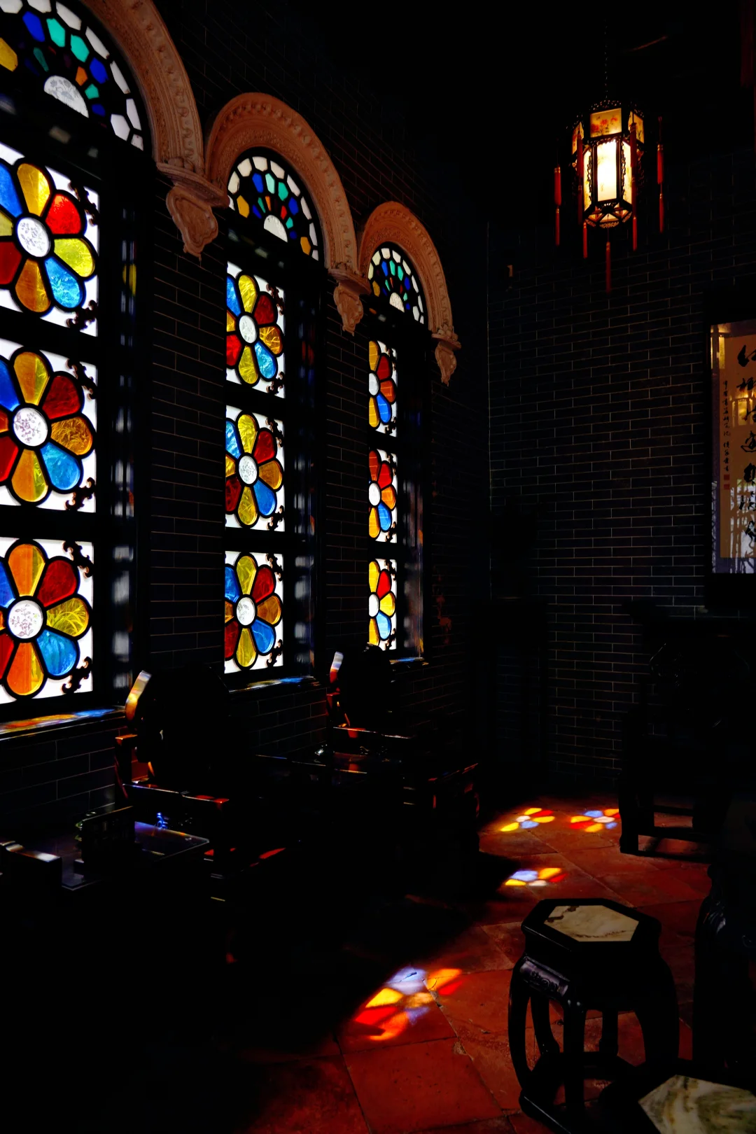 夜晚赏宫灯映照下的琉璃幻境