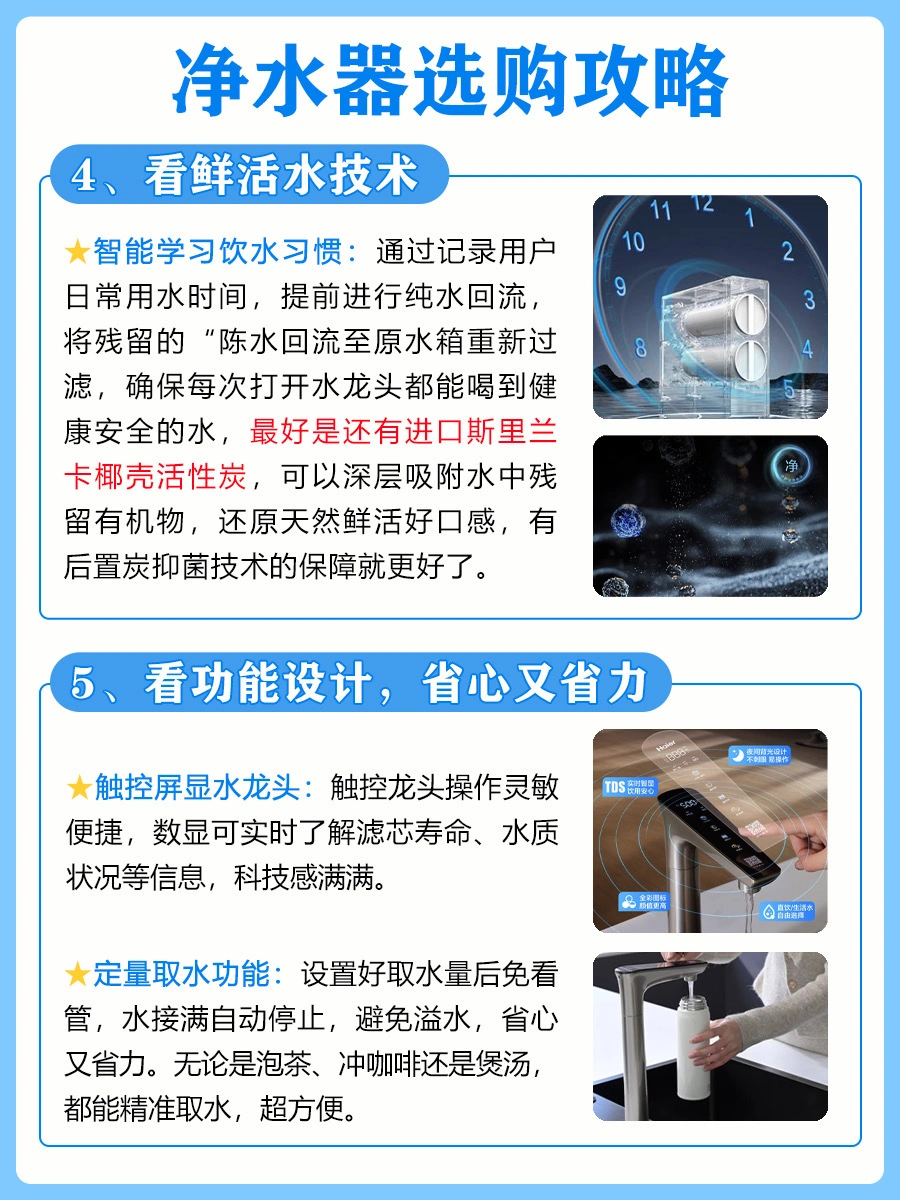 ✅必须选零陈水的,这种净水器能够智能学习饮水习惯,提前进行纯水回流,保证每一口都是健康鲜活水