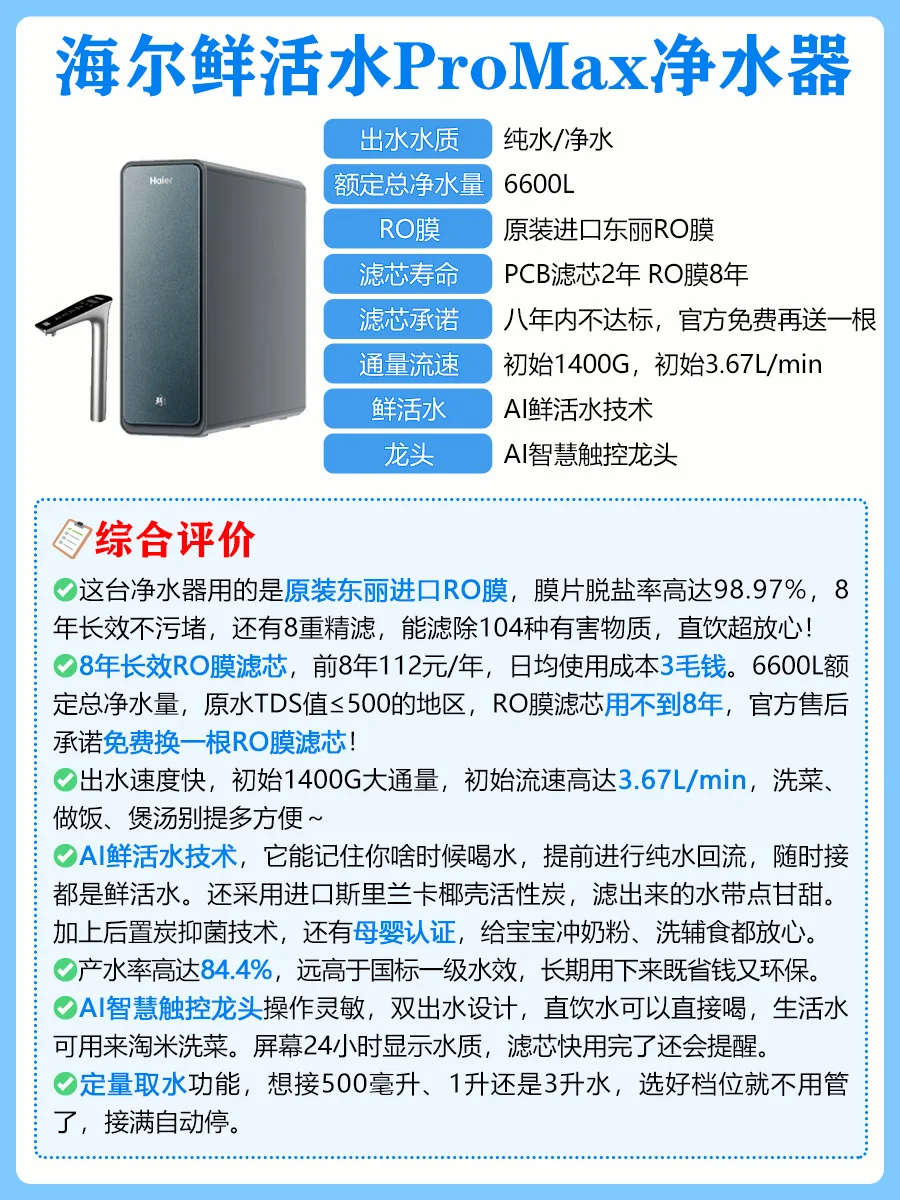 📝对比了多款热门净水器,我选了海尔鲜活水ProMax净水器,大家可以跟着闭眼入~