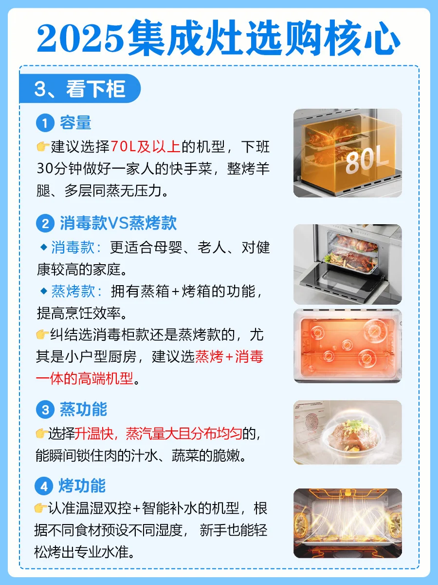 ✅下柜80L大容量,一台机器=蒸箱+烤箱+空气炸锅+消毒柜,节省厨房空间,30分钟搞定一桌丰盛美食。