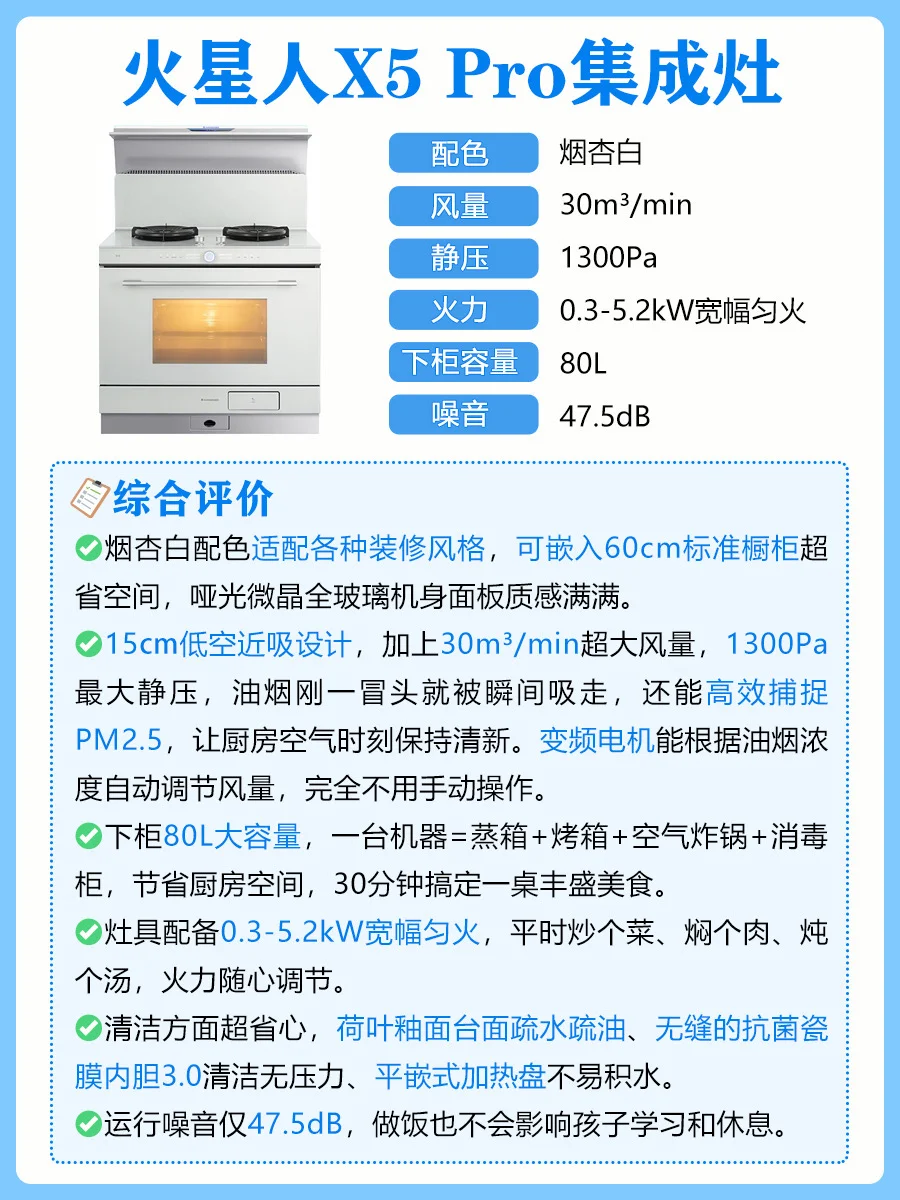 👉🏻综合以上选购要点,我锁定了火星人X5 Pro集成灶