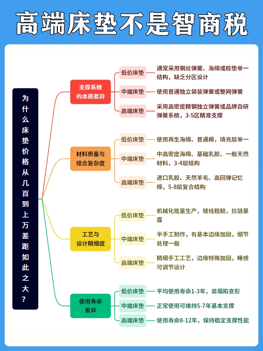 ✨从支撑系统的本质差异、材料质量与组合复杂度、工艺与设计精细度、使用寿命差异这四个方面告诉你低价、中端、高端床垫的区别~(图2)