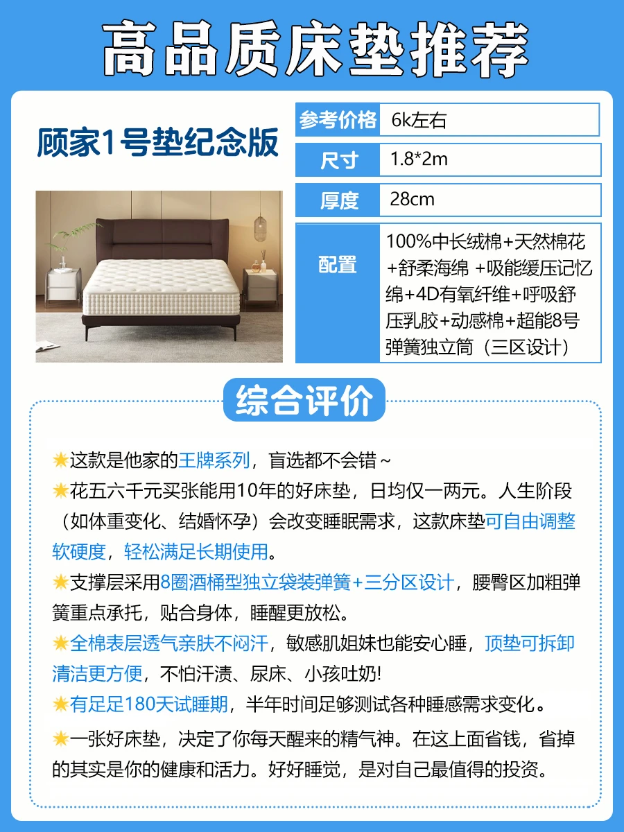 床垫不只是家具,它决定你每天☀️醒来的状态。省这个钱,吃亏的是自己的健康和精力。睡眠是非常值得投资的事。