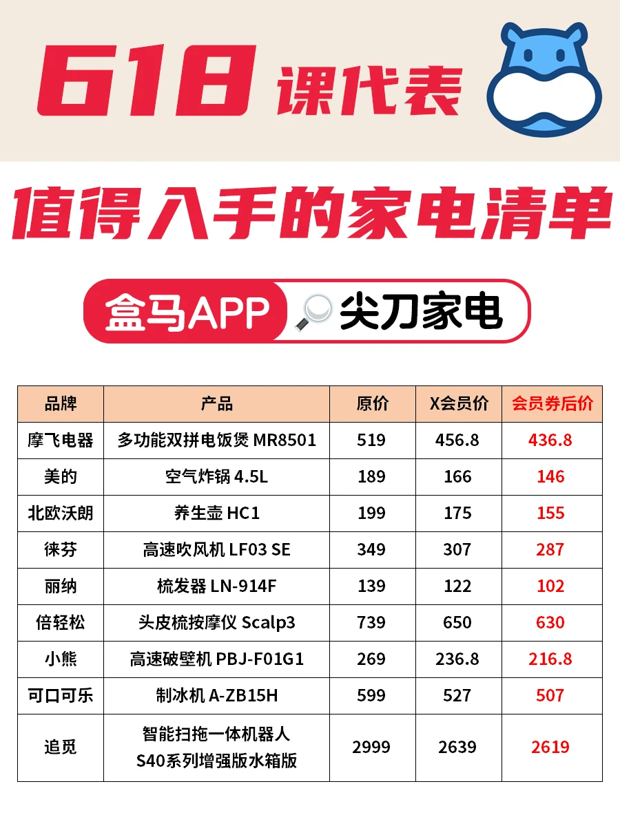 💥摸透了各大平台的优惠套路,把店铺券、跨店满减这些羊毛全薅上,然后对着这些家电挨个牌子比,看看哪个性能能打、用过的网友咋吐槽,最后精打细算整理了这份盒马618家电清单~到手价简直香哭!❤🔥