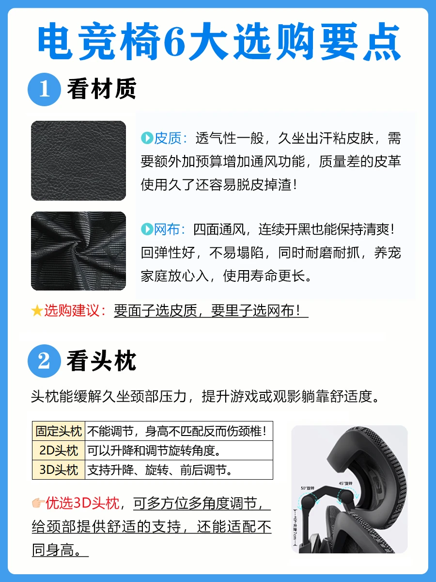 对于游戏爱好者来说,😍拥有一张电竞椅可以大大提升游戏体验!🤔但市面上的电竞椅琳琅满足,怎么挑选?下面给大家整理了电竞椅的选购要点,一起来看看吧~