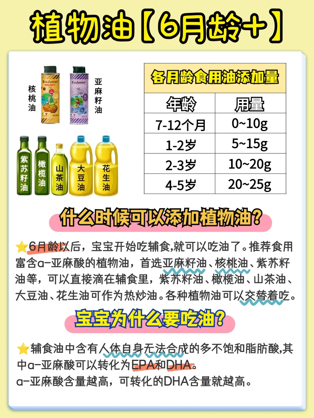 🔸6月龄👶🏻宝宝添加辅食后,首.选核桃油和亚麻籽油作为初次添加的辅食油。