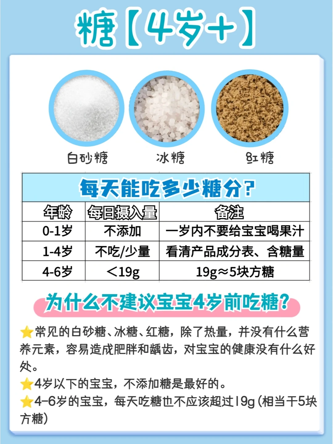 糖除了热量之外,没有什么营养。4岁以下的宝宝,建议不吃糖。