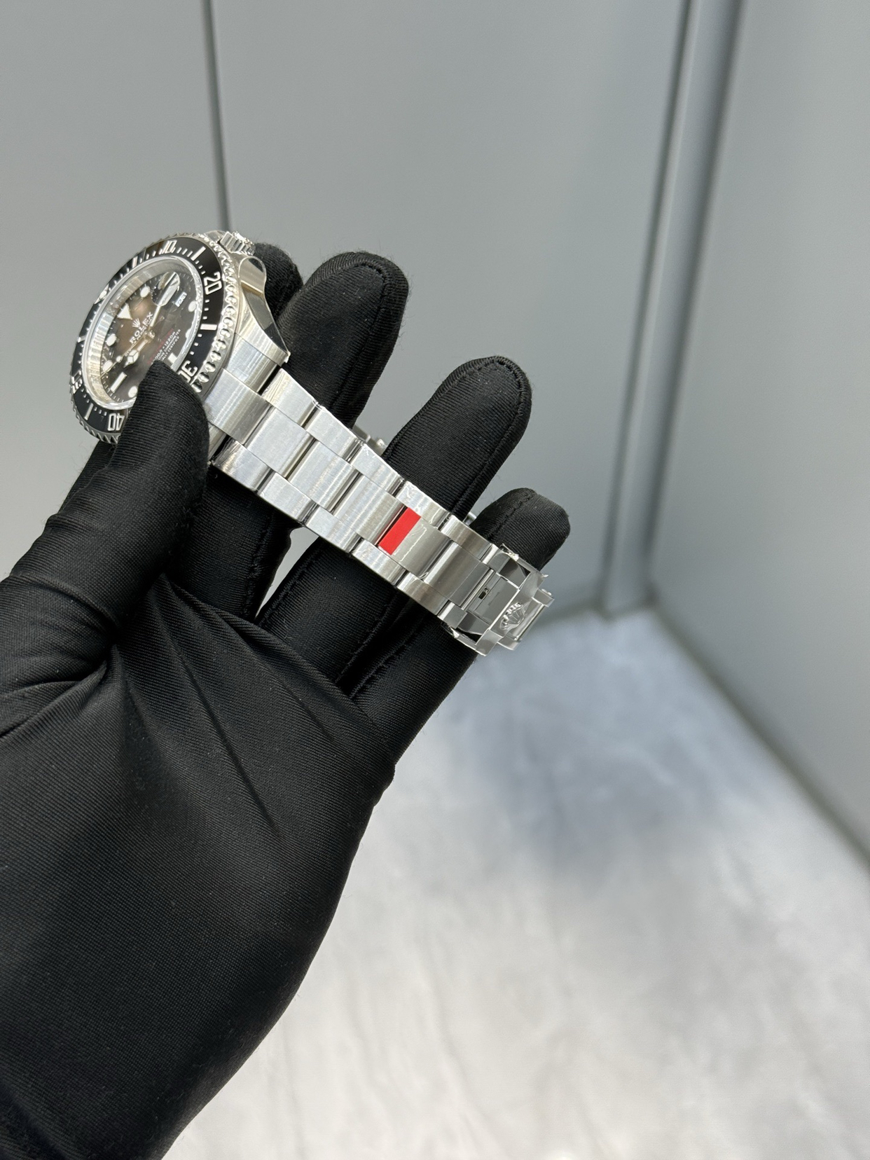 和所有鬼王一样,它的防水深度达到惊人的1,220米,是专业潜水领域的佼佼者。它配备了劳力士专利的排氦阀门,足以应对深海严酷的环境。