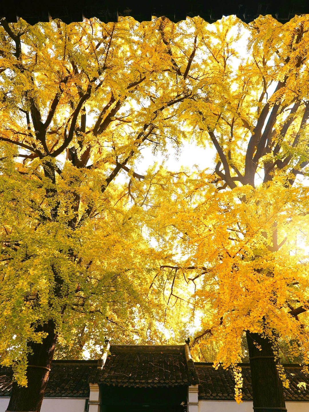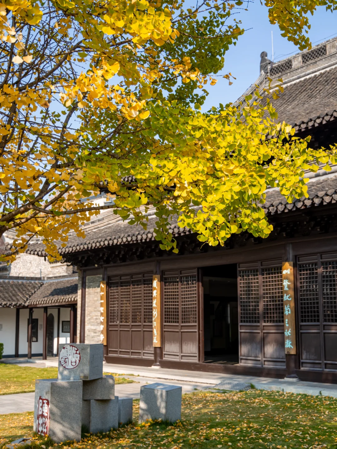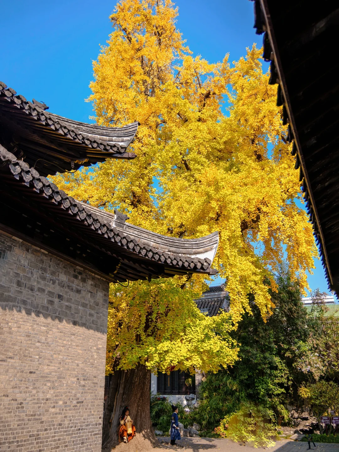 扬州赏银杏的顶流!年老银杏树刚刚变金黄,搭配寺内的飞檐翘角,禅意十足🍂