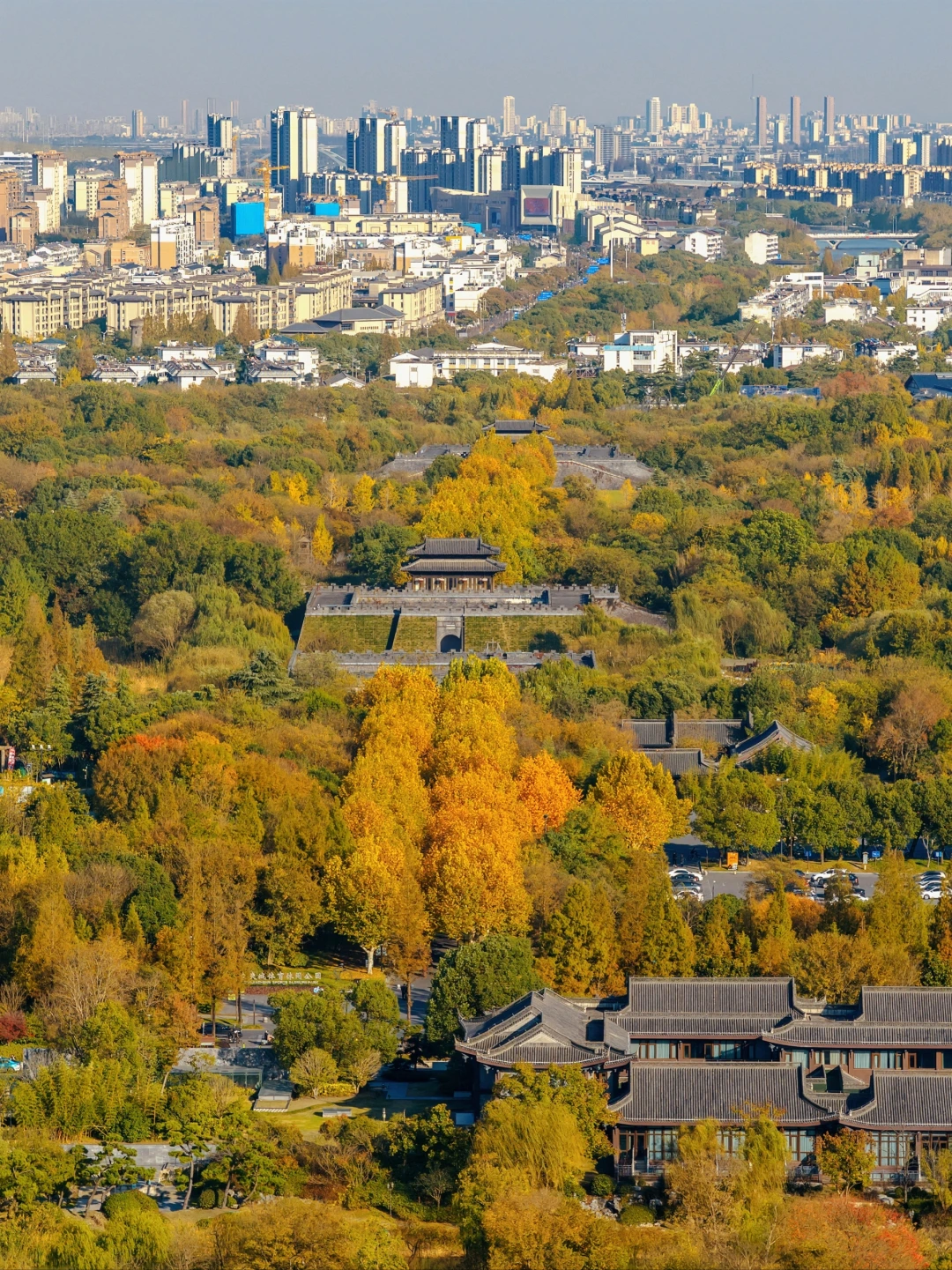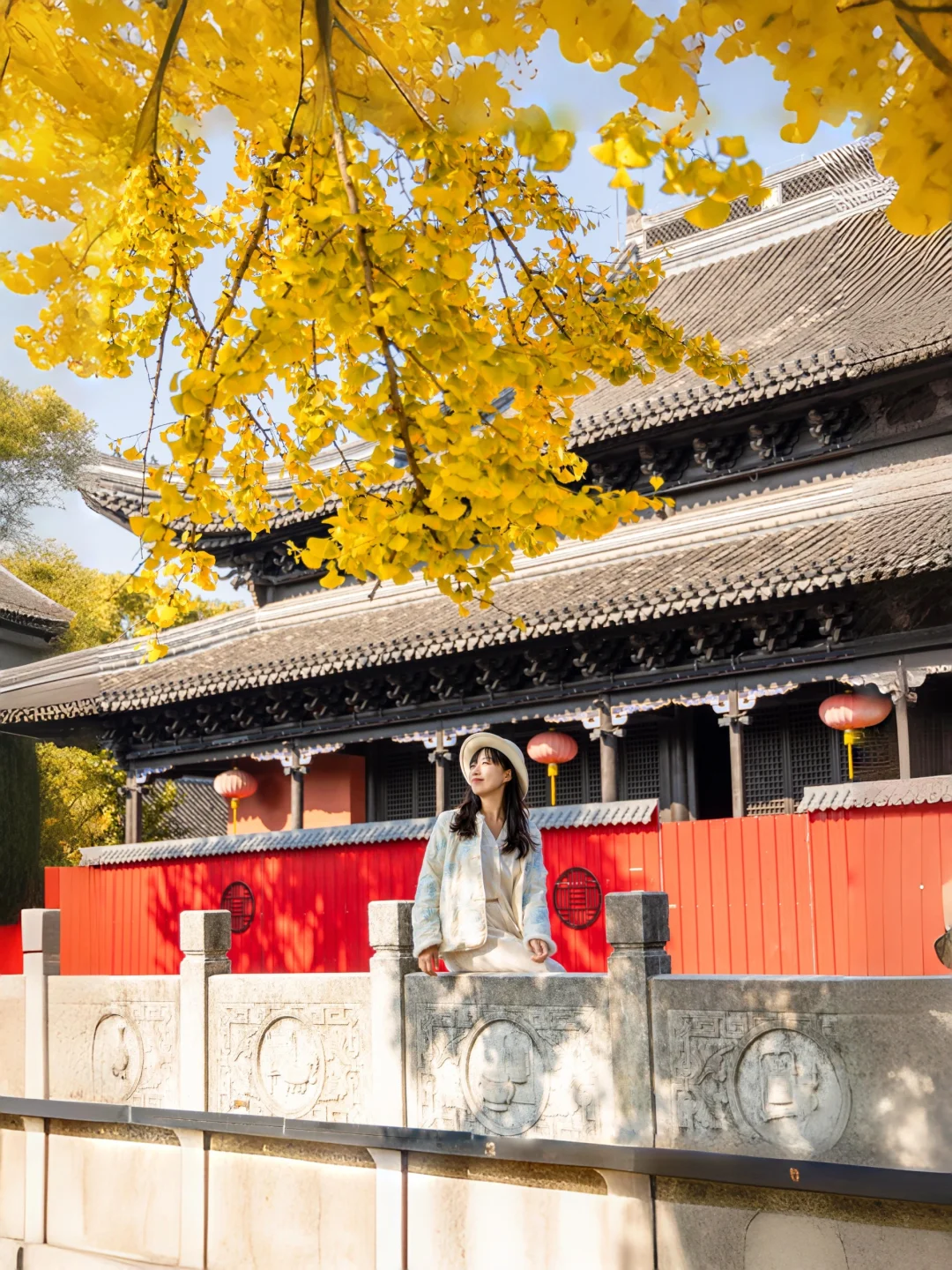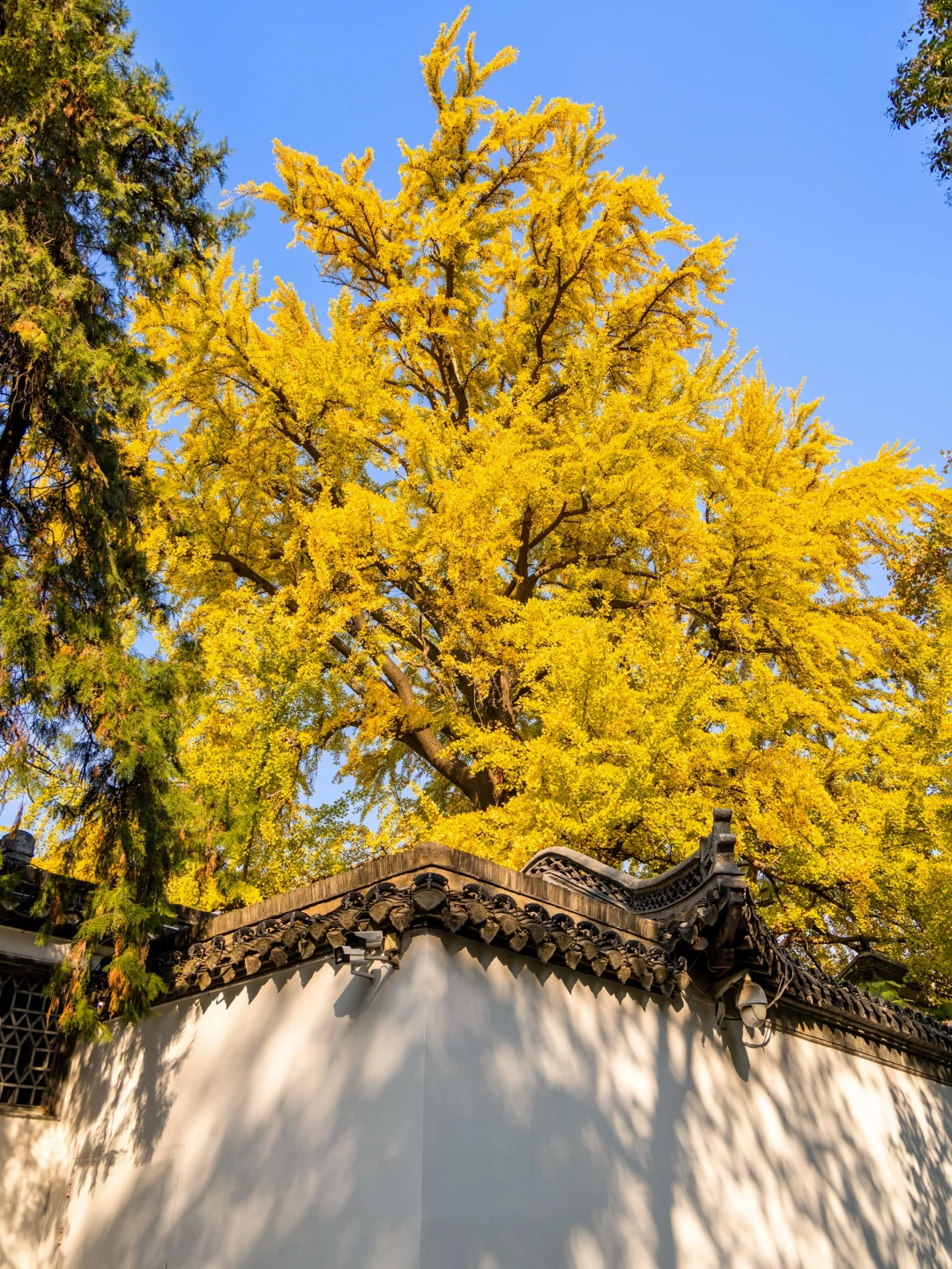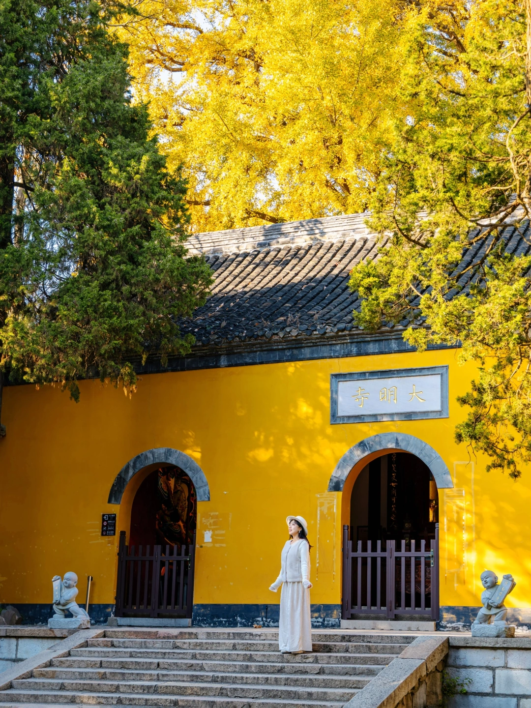 扬州赏银杏的顶流!年老银杏树刚刚变金黄,搭配寺内的飞檐翘角,禅意十足🍂