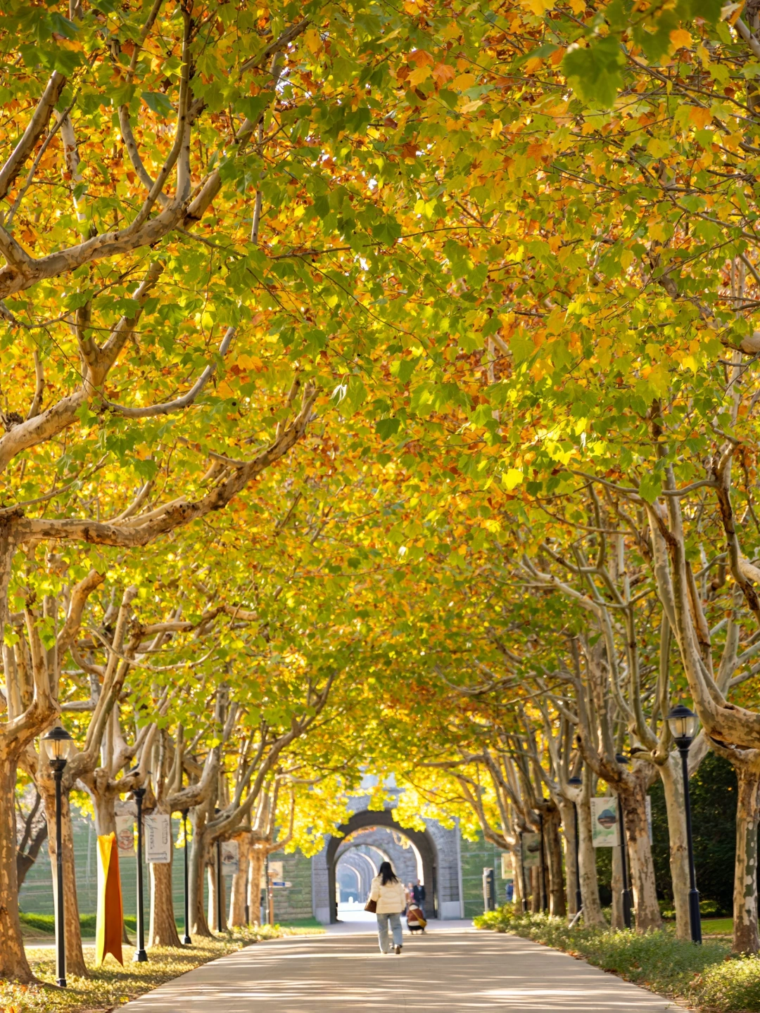 扬州人自己的梧桐大道!两排梧桐树的枝叶交织成拱廊,阳光透过缝隙洒在落叶上,随手拍都浪漫