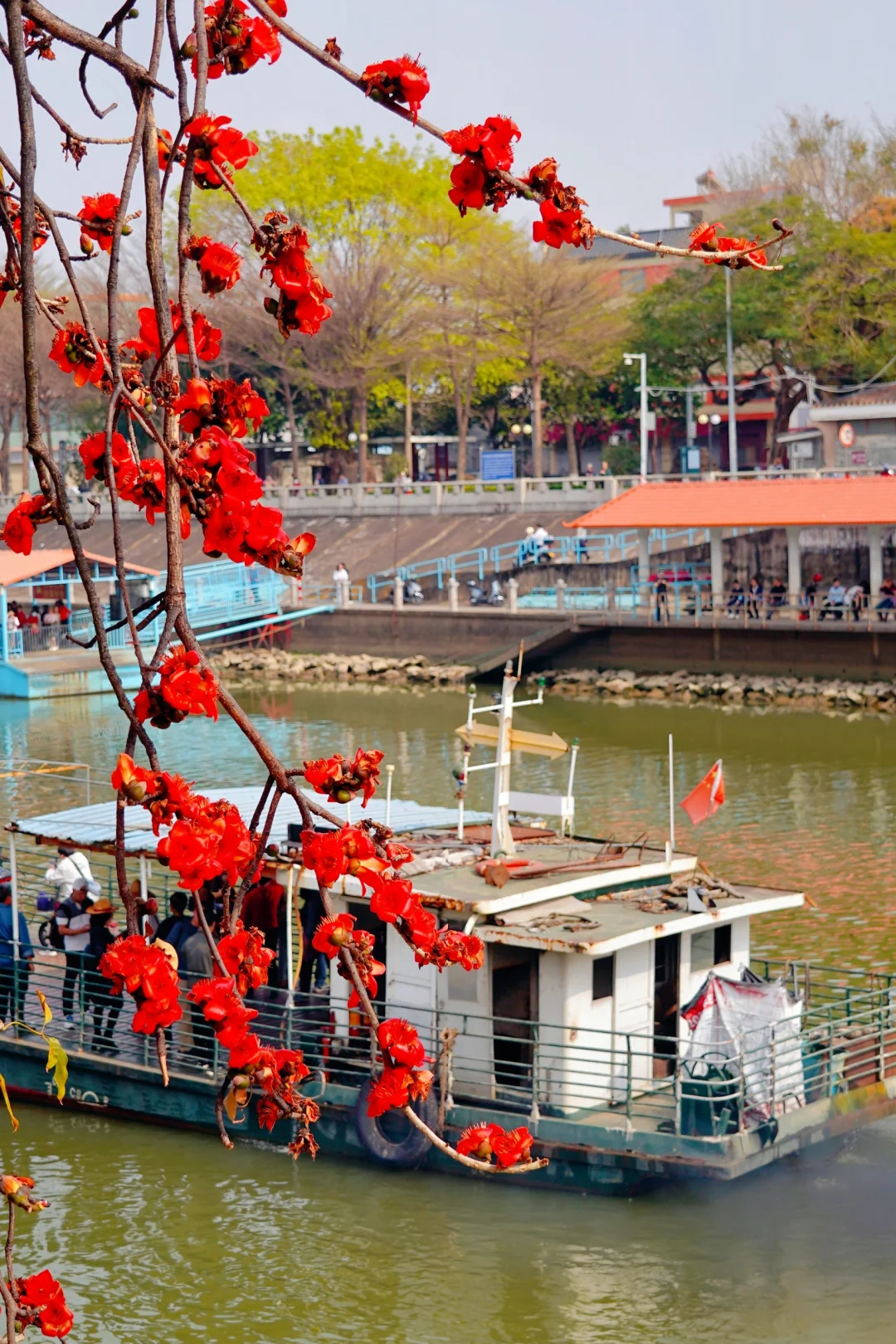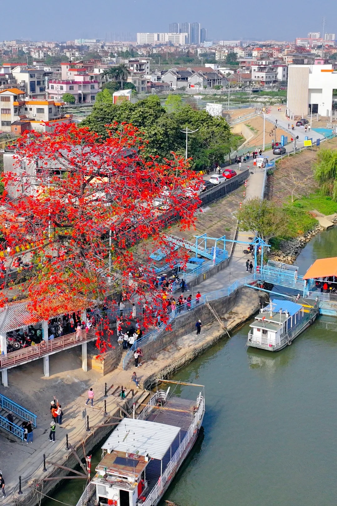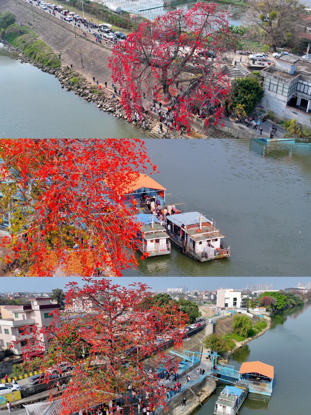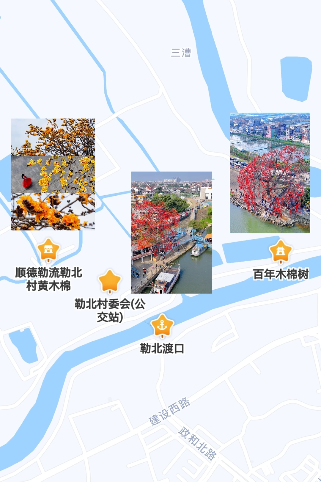 佛山这个勒北渡口木棉花最近真是🔥出圈 这么多人的火爆打卡地到底怎么玩? 这篇笔记给您说明白了 提前做好攻略才不会影响出游心情呢! - 📸游玩小tips ①、木棉树均在勒北渡口的对岸,所以如果不是想坐轮渡,建议自驾导航勒北村委会(公交站),那里有个广场免费🆓停车,车位还比较充足,建议别开上河坝,车队且沿路都停着车比较考车技 ②、勒北渡口这里的木棉能拍到与轮渡同框,不过这棵木棉并不是如垂柳瀑布般枝条的百年木棉,那棵木棉花需要沿着河堤步行几百米 ③、附近还有一棵黄木棉很是特别,具体位置如路书