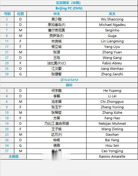 河内公安vs北京国安首发:法比奥、赛鸟领衔,林良铭出战