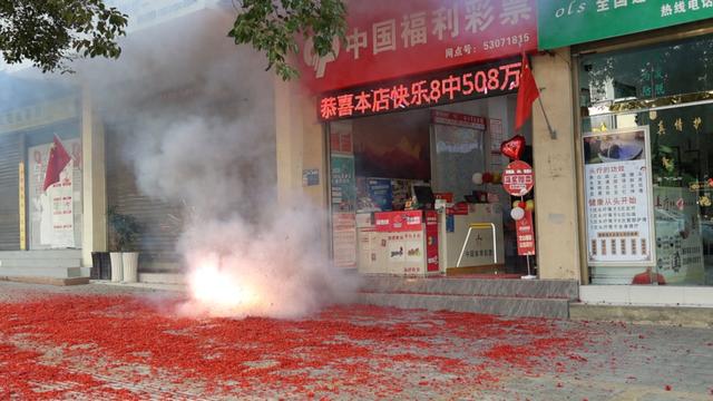 11月25日早晨,中国福彩麻栗坡县城莱溪华庭网点门前鞭炮震天,庆祝该网点中出头奖。11月24日的福彩快乐8第2025314期,该网点中出一注一等奖,奖金508万元。