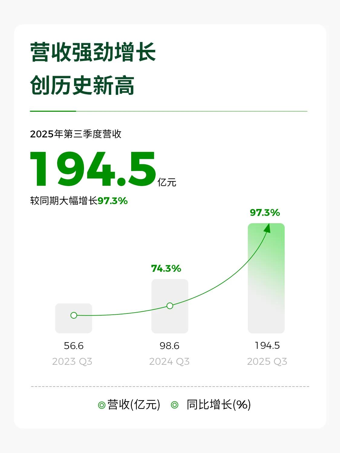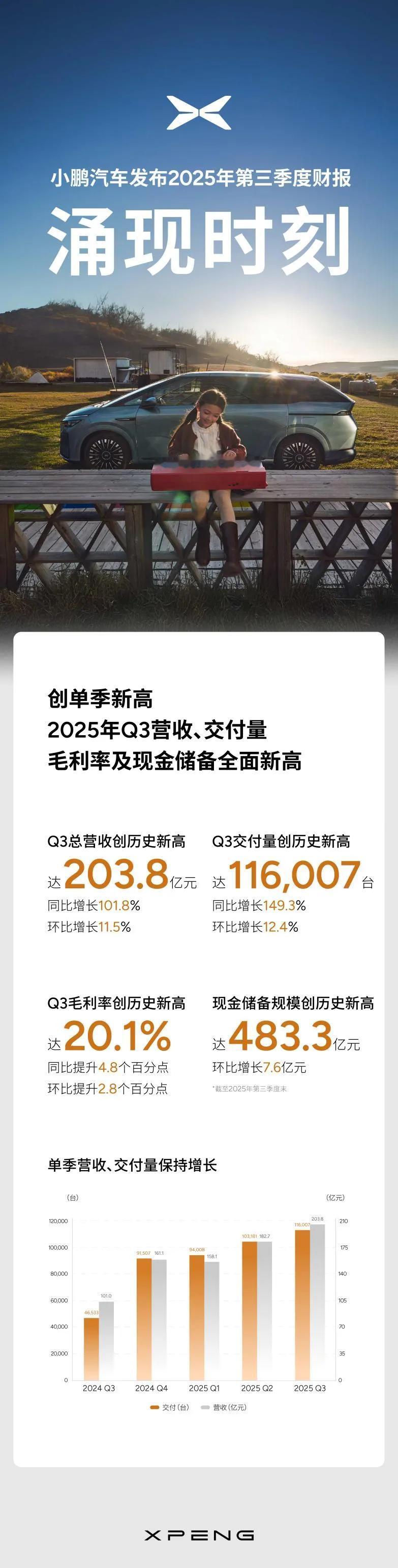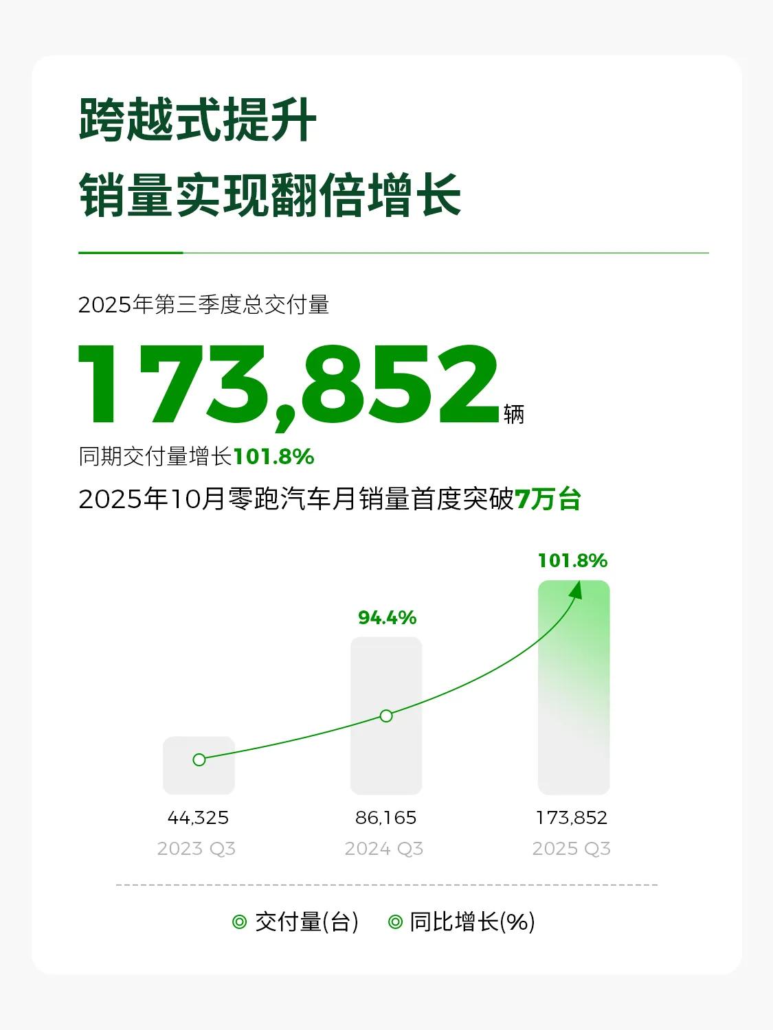 新势力Q3财报全部出炉,只有零跑盈利! 随着蔚来、理想和小鹏陆续公布2025年第三季度财报,再算上此前的零跑,新势力四大品牌Q3的财报全部公布,从各家财报来看,零跑是唯一三季度盈利的车企,而且还是持续季度盈利,这个结果不知道有多少人能想到。 具体来看,25年第三季度,零跑交付新车17.4万辆,营收194.5亿元,毛利率14.5%,净利润1.5亿元。从这几个数据可以看出,零跑如今的发展有多健康,就拿毛利率来说,同比提升6.4个百分点,这说明零跑现在的成本控制相当出色,并由此带来定价优势;而339.2亿元的现金储备,则是零跑持续稳健发展的基石,可以为后续的研发或开展更多业务提供保障。 相信很多朋友也好奇,零跑凭什么取得这些成绩,我认为主要有以下优势:首先是技术优势,零跑一直坚持全域自研,因此很多关键零部件他都可以做到自产自研,因此可以做到低成本;其次就是产品布局,精准覆盖了10-20万区间最主流的市场;再加上得到浙江省政府的大力支持,让零跑没有后顾之忧,能有今天的发展也就水到渠成了。 进入四季度,零跑10月首破7万台,按照这个强势表现来看,我预计四季度不仅交付量会创新高,营收和净利润恐怕也会更好!