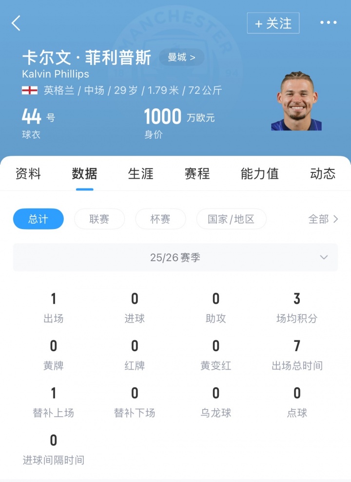 报道称,菲利普斯即将年满30岁,自2022年以5000万镑的转会费加盟曼城以来,他仅代表蓝月亮在英超首发两次,此后他还被租借至西汉姆联以及伊普斯维奇,但均未获得成功。