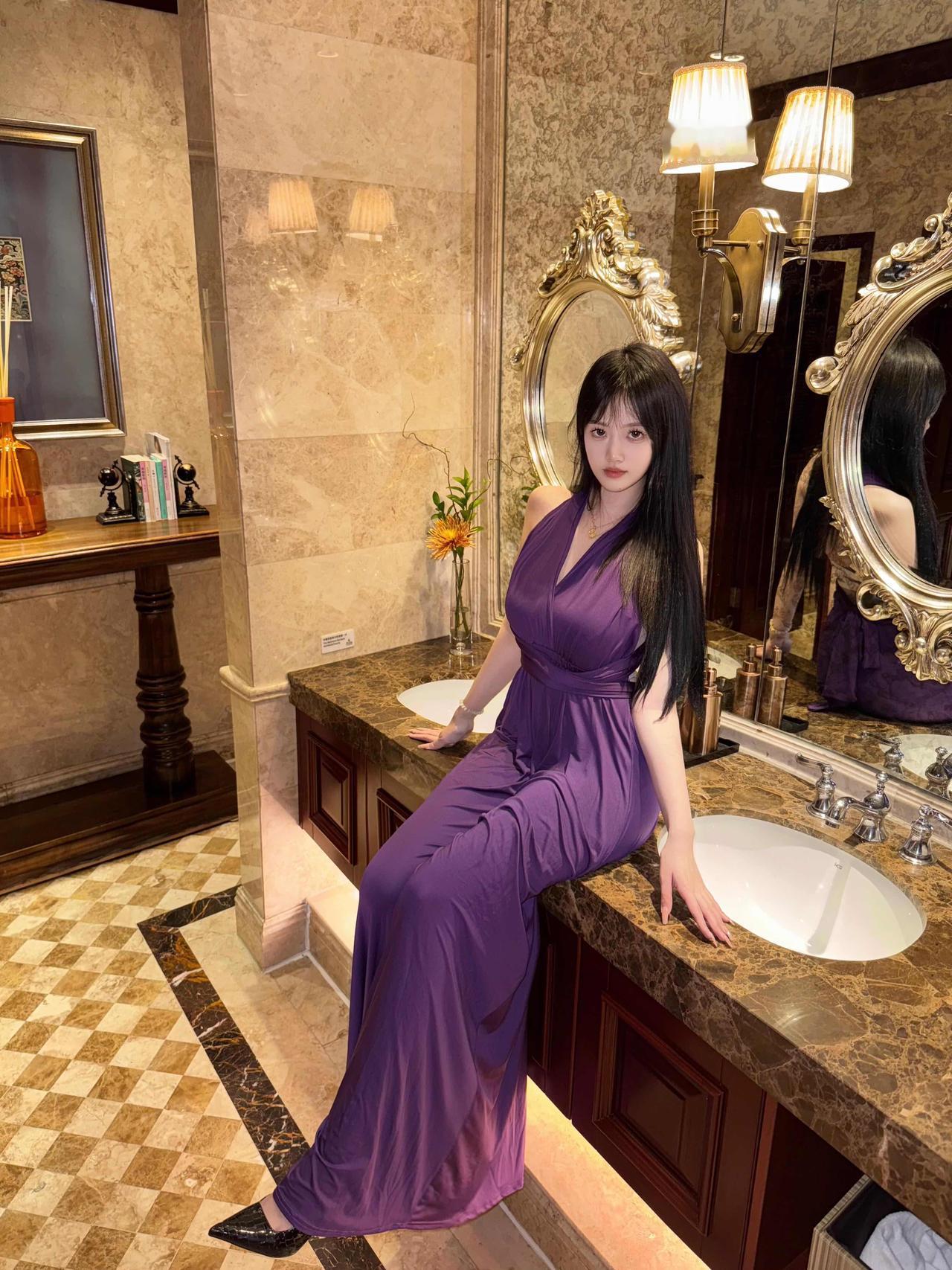 暖黄灯光漫过雕花镜沿,把一袭紫裙揉成流动的丝绒。她坐在大理石台面上,黑缎鞋尖轻晃着,像把这华丽浴室的精致,都变成了衬她的背景板。 不是刻意的张扬,是裙摆垂落时刚好露出的线条,是指尖蹭过锁骨的漫不经心原来“松弛感的惊艳”,就是连镜子里的倒影,都在悄悄为她心动。 粉雾玫瑰吊带裙 湖畔紫裙照 紫裙韵 温柔风紫裙 紫裙室内照 紫裙风影 雾蓝连衣裙 灰纱玫瑰长裙