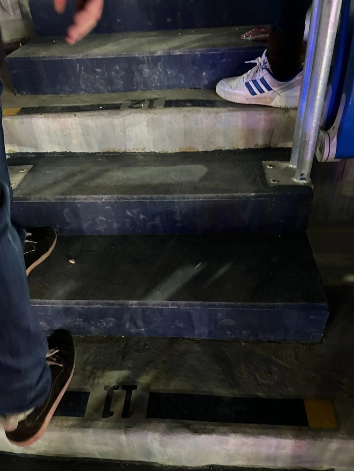 巴萨球迷注意到的另一个问题是“入口处的台阶非常不平整”,如下图所示。乍一看,有些台阶的宽度和间距似乎不一样,不过这些问题都可以解决。