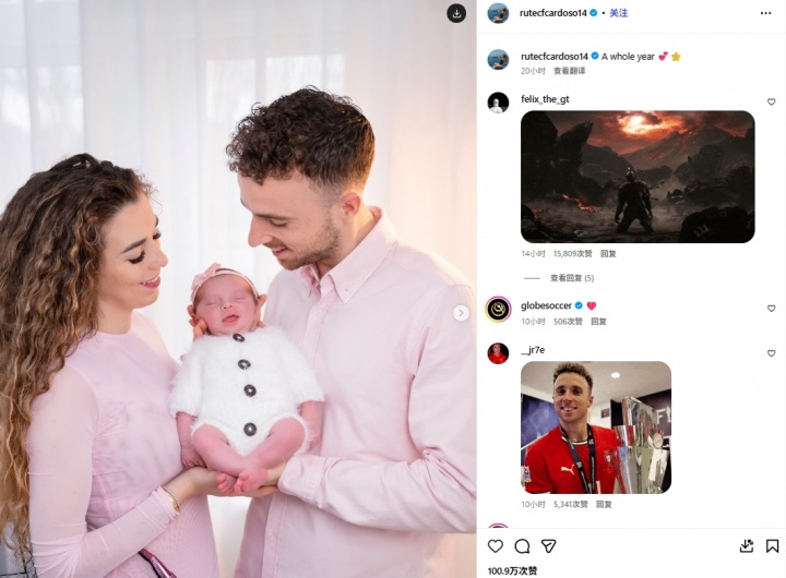 直播吧11月27日讯昨日若塔的小女儿(第三个孩子)年满一岁,若塔遗孀在社媒发文,贴出多张图片纪念女儿的生日,其中包括三人的合照,以及多张若塔生前照顾孩子的照片。