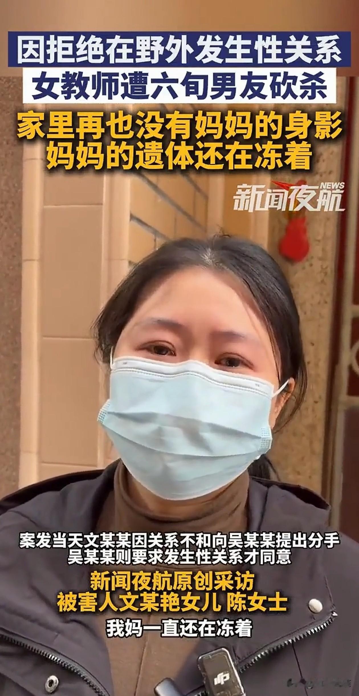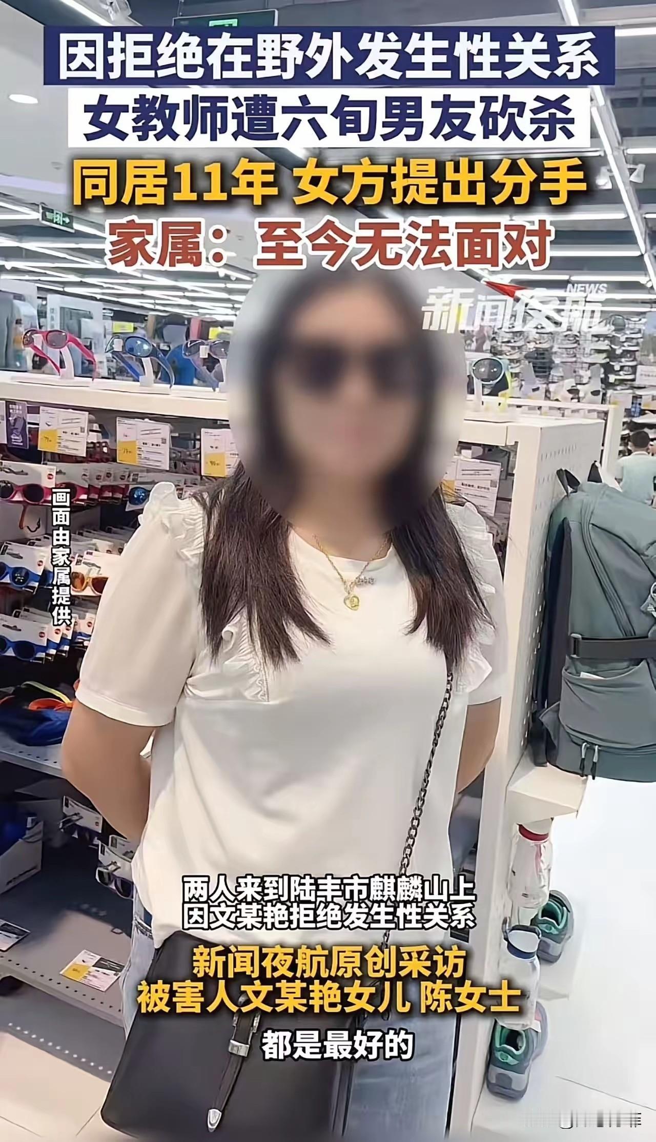 一女教师因为拒绝在野外发生关系,被六旬男友拿斧头砍杀,女儿表示难以接受,妈妈在自